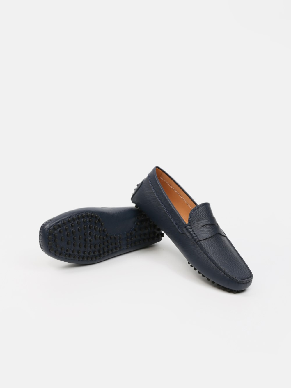 Giày lười nam da Saffiano, đế đinh cao su êm nhẹ – phong cách driving loafer sang trọng. Thiết kế penny tối giản, chất da bền đẹp, thoáng khí; đế bám tốt khi di chuyển và lái xe