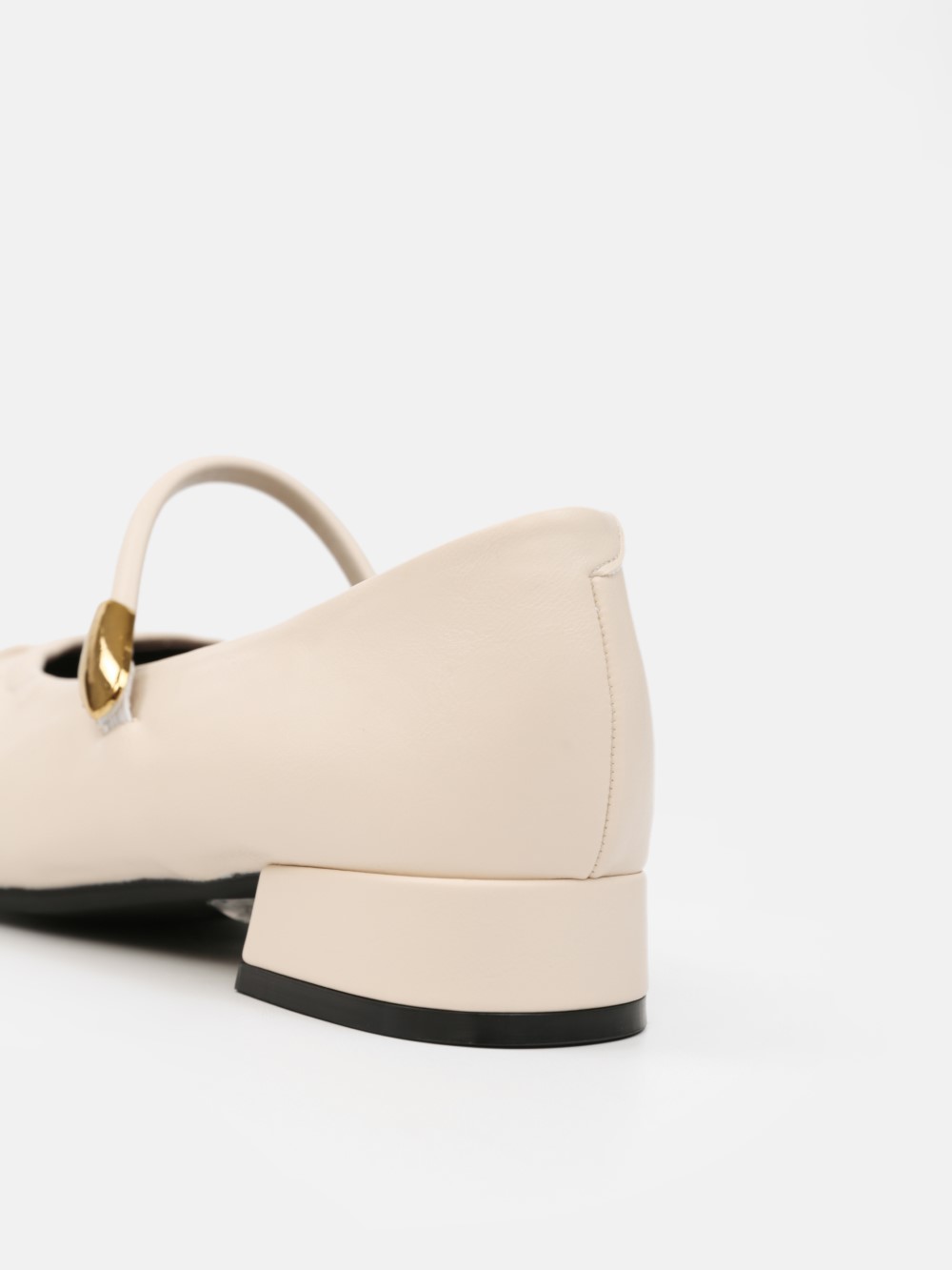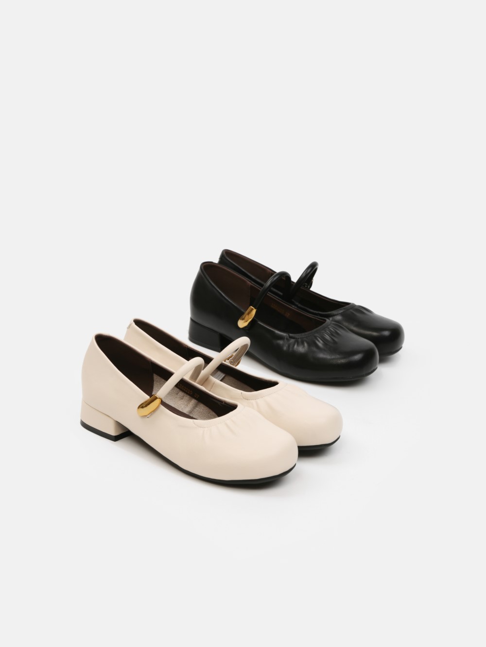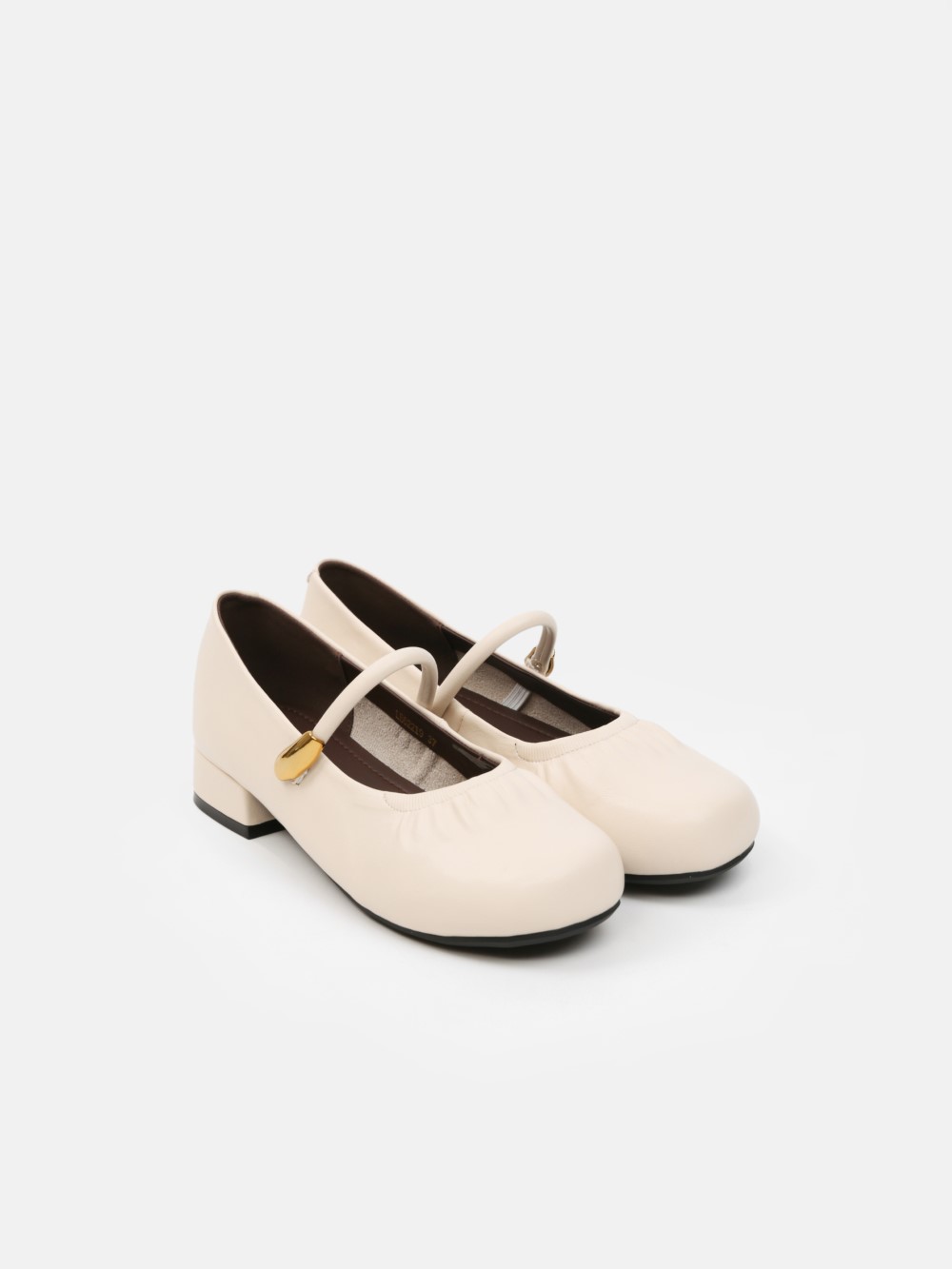 Đôi giày Mary Jane gót thấp mang vẻ đẹp cổ điển được làm mới bằng những đường nét mềm mại và tinh giản. Phần mũi bo tròn tạo cảm giác nhẹ nhàng, nữ tính, trong khi chi tiết dây quai ngang phối khóa kim loại ánh vàng trở thành điểm nhấn tinh tế, giúp tổng thể thêm sang trọng mà không phô trương.