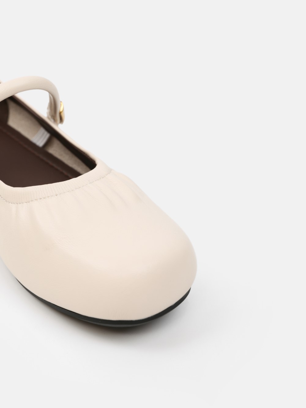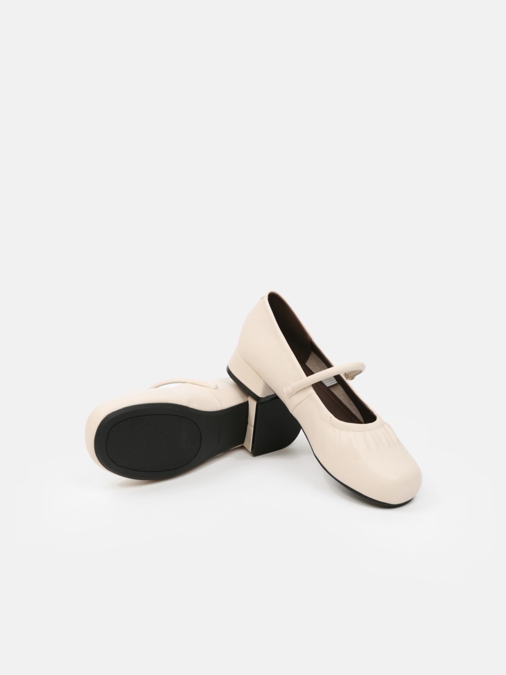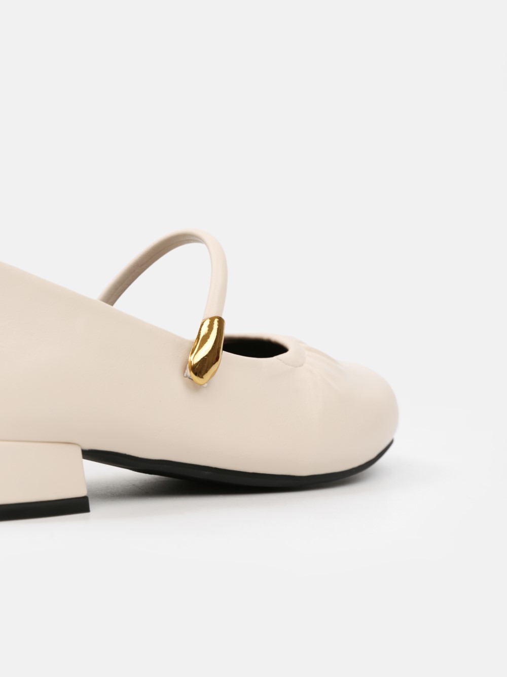 Đôi giày Mary Jane gót thấp mang vẻ đẹp cổ điển được làm mới bằng những đường nét mềm mại và tinh giản. Phần mũi bo tròn tạo cảm giác nhẹ nhàng, nữ tính, trong khi chi tiết dây quai ngang phối khóa kim loại ánh vàng trở thành điểm nhấn tinh tế, giúp tổng thể thêm sang trọng mà không phô trương.