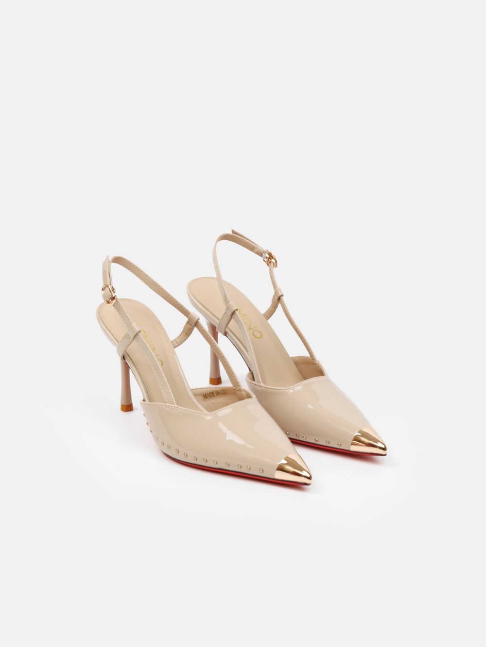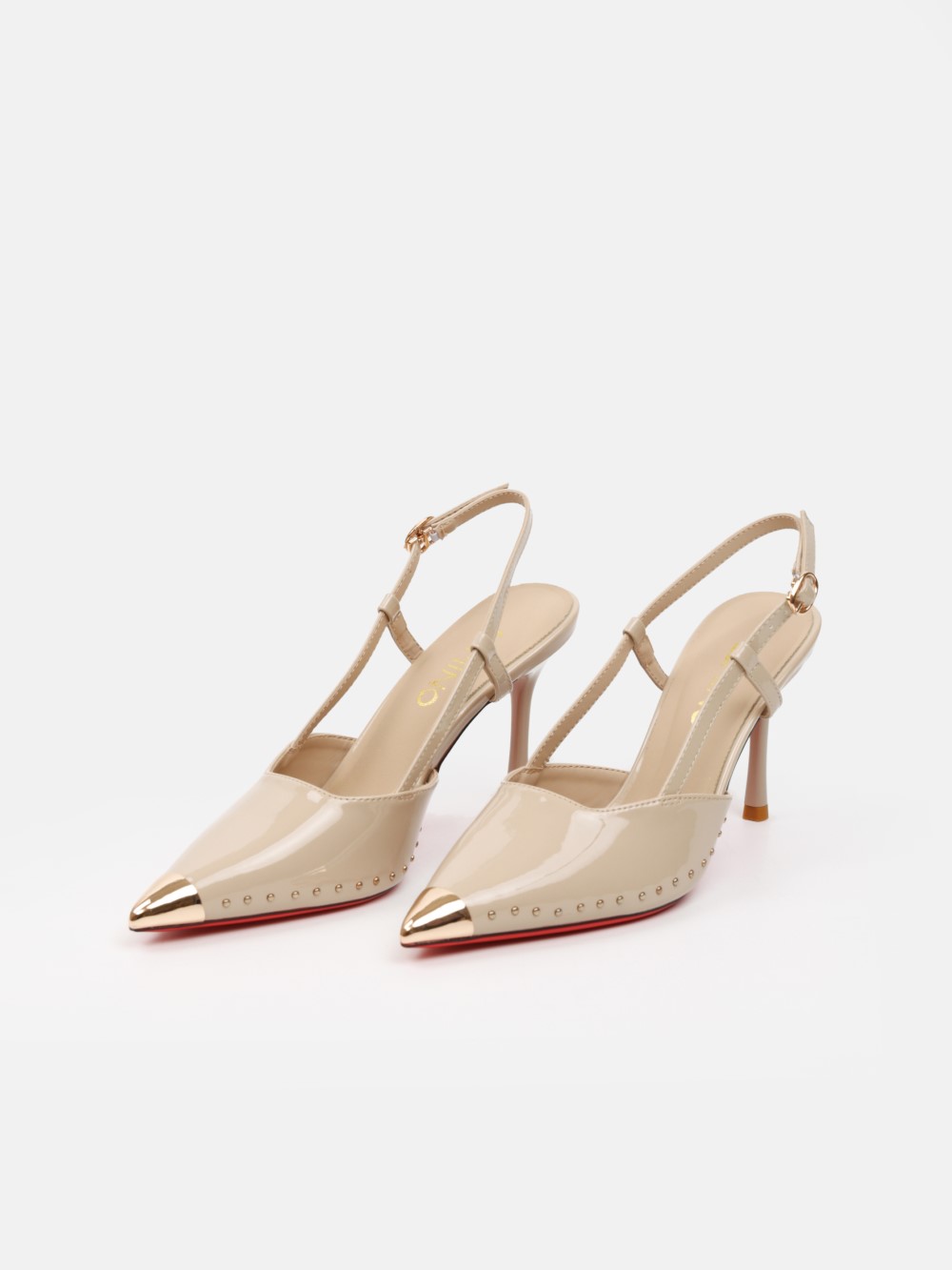 Đôi giày cao gót mũi nhọn slingback mang tinh thần thời trang cao cấp, tôn vinh vẻ đẹp tự tin và quyến rũ c��anàng trong những khoảnh khắc cần sự nổi bật. Thiết kế mũi nhọn sắc sảo kết hợp chụp mũi ánh kim tạo điểm nhấn tinh tế, giúp tổng thể trở nên sang trọng và cuốn hút ngay từ ánh nhìn đầu tiê