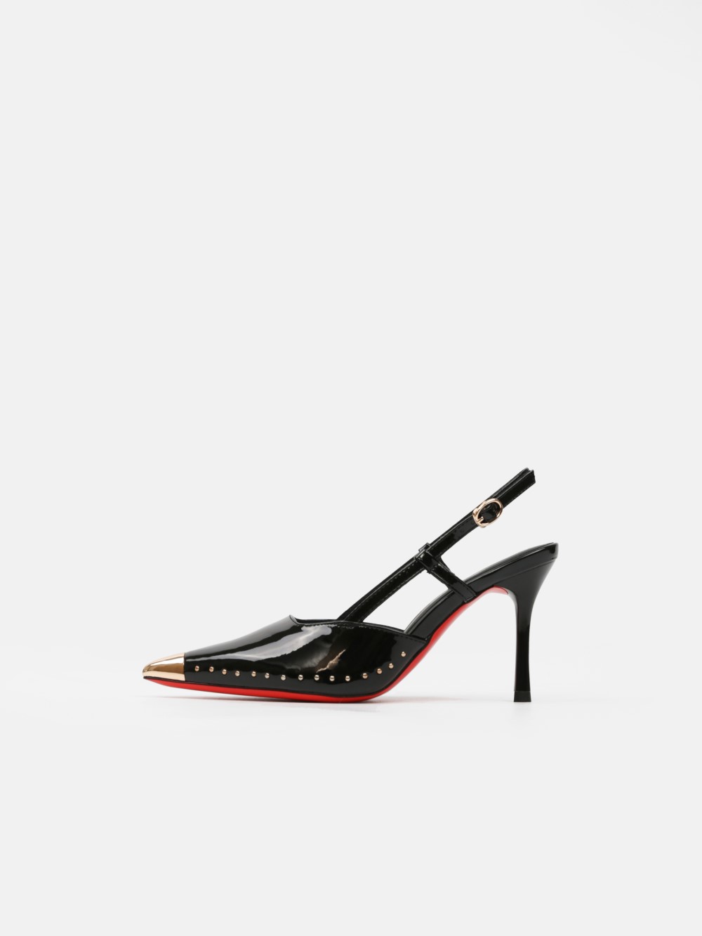 Đôi giày cao gót mũi nhọn slingback mang tinh thần thời trang cao cấp, tôn vinh vẻ đẹp tự tin và quyến rũ của nàng trong những khoảnh khắc cần sự nổi bật. Thiết kế mũi nhọn sắc sảo kết hợp chụp mũi ánh kim tạo điểm nhấn tinh tế, giúp tổng thể trở nên sang trọng và cuốn hút ngay từ ánh nhìn đầu tiê
