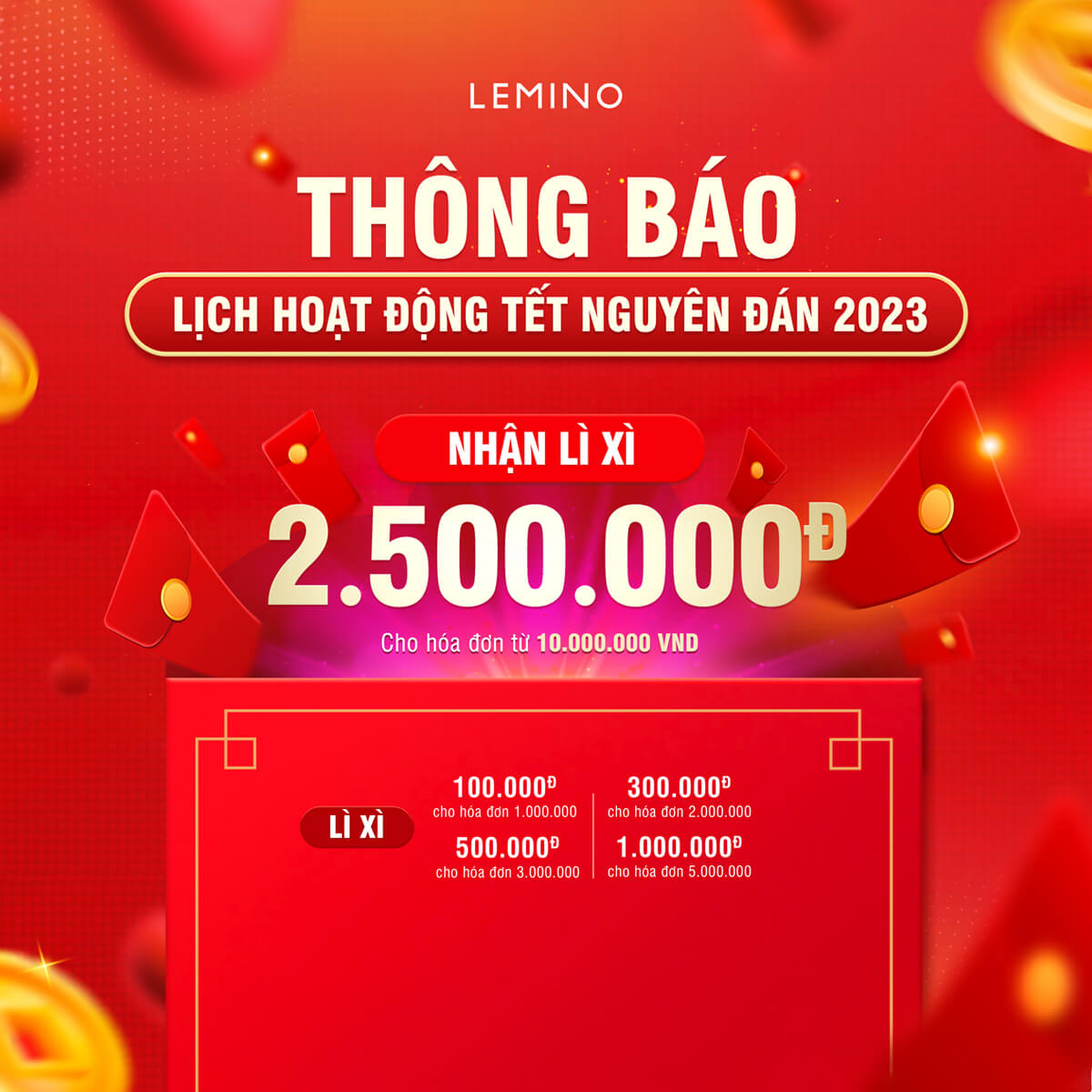 Quý khách vui lòng cập nhật lịch hoạt động của hệ thống LEMINO tại các TTTM trên toàn quốc trong dịp
