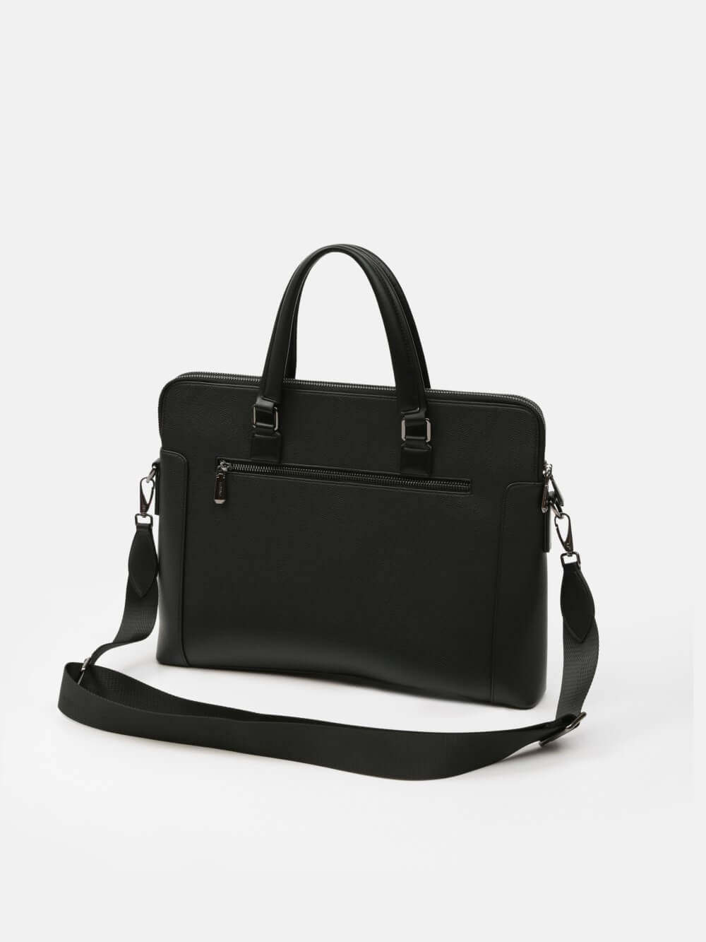 Cặp nam phom hộp mảnh mai với bề mặt da hạt chống trầy nhẹ, viền bo tinh gọn và phụ kiện kim loại màu gunmetal. Ngăn chính chứa tài liệu A4, laptop mỏng 13–14", kèm các ngăn phụ cho bút, thẻ, cáp; phía trước có ngăn nhanh tay. Đi kèm quai xách đôi và dây đeo tháo rời bản rộng cho hai cách mang linh hoạt. Dễ phối từ suit công sở đến smart–casual cuối tuần, giữ hình ảnh gọn gàng, chuyên nghiệp trong mọi lịch trình.