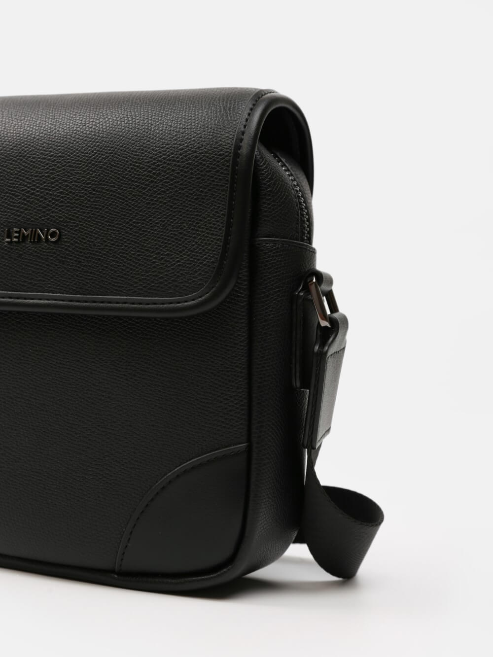 Túi đeochéo nam LEMINO da hạt sang trọng – nắp gập tối giản, khoang chính khóa kéo kèm túi trước ẩn dưới nắp, dây đeo tháo rời/điều chỉnh. Thiết kế gọn gàng, linh hoạt từ công việc đến cuối tuần.