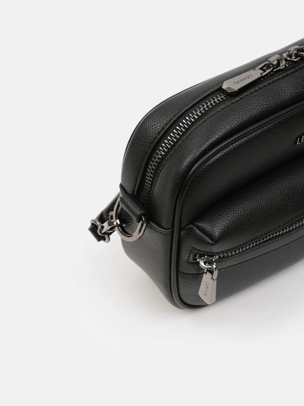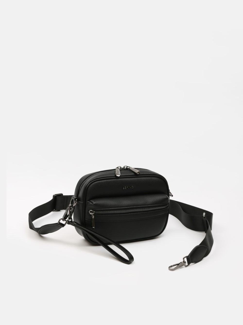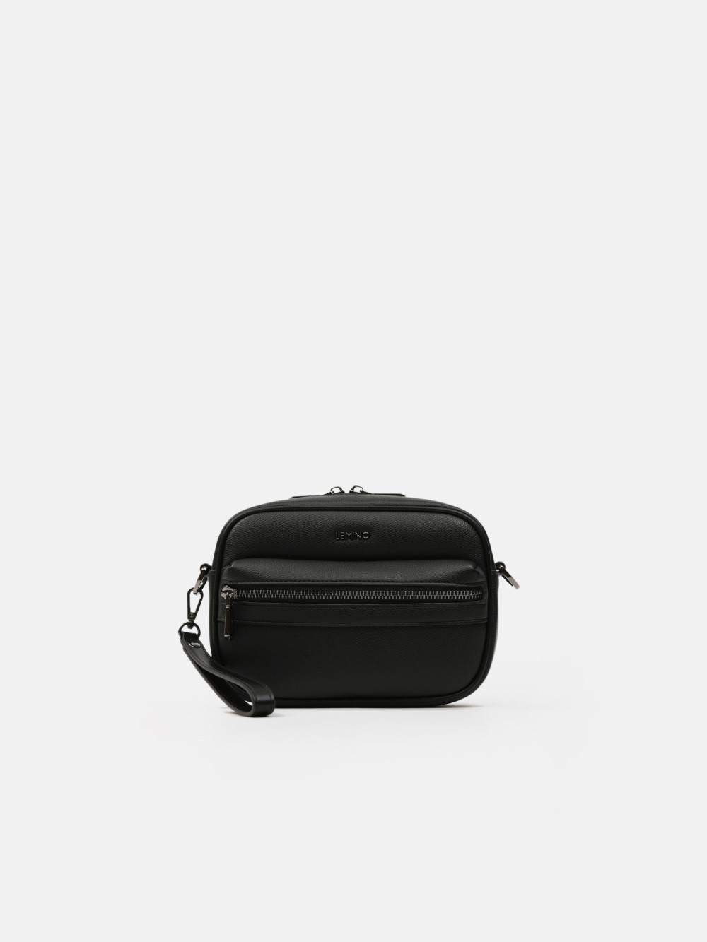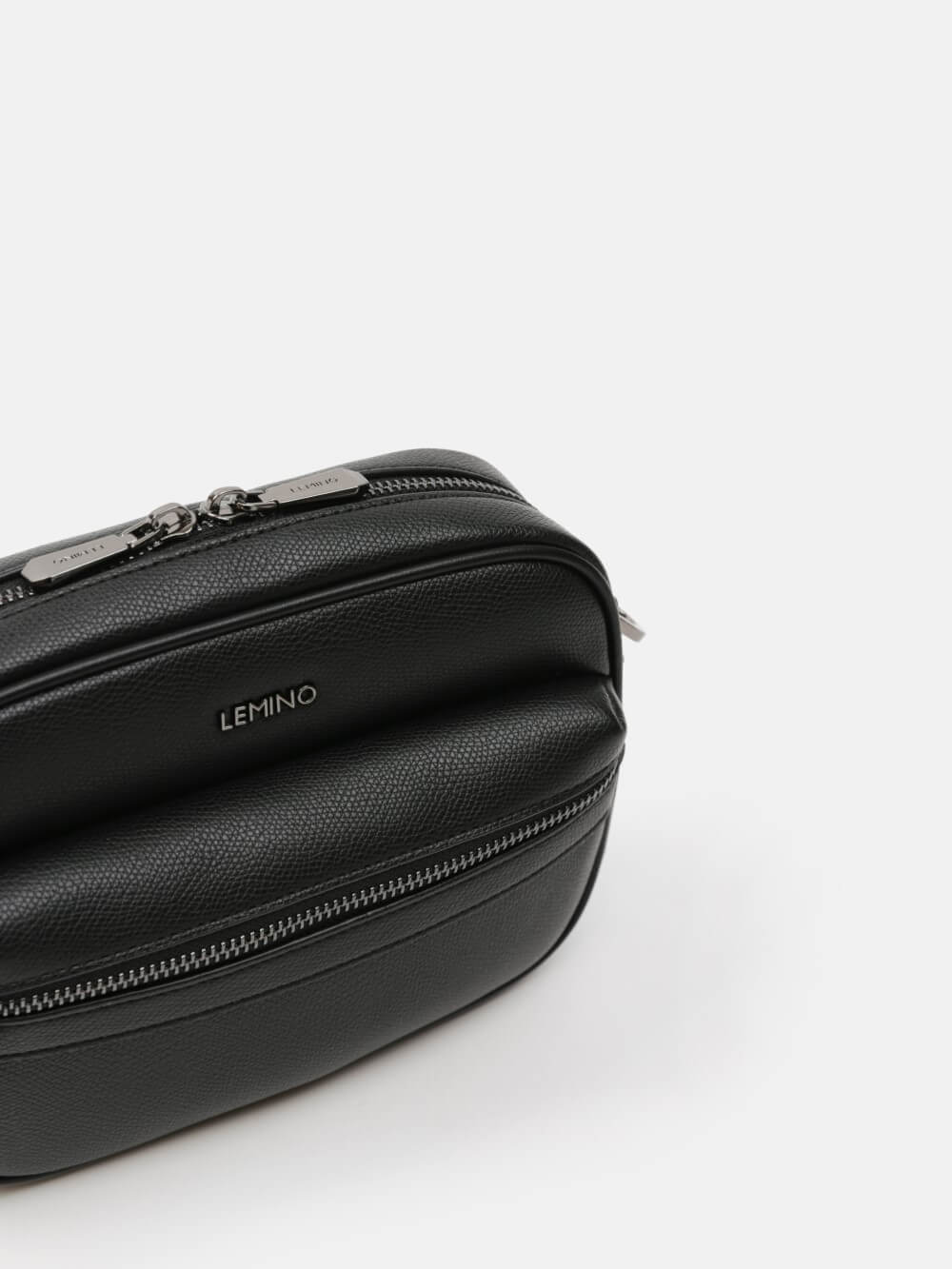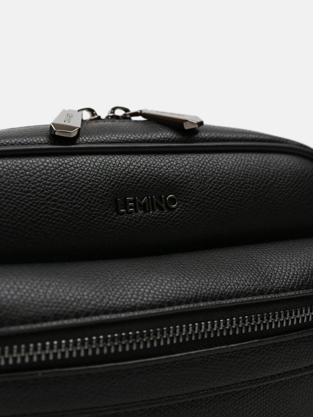 Túi đeo chéo nam LEMINO da hạt sang trọng, hai khoang khóa kéo kèm túi zip trước, dây đeo tháo rời/điều chỉnh và quai cổ tay tiện lợi. Gọn gàng, linh hoạt cho mọi hành trình.