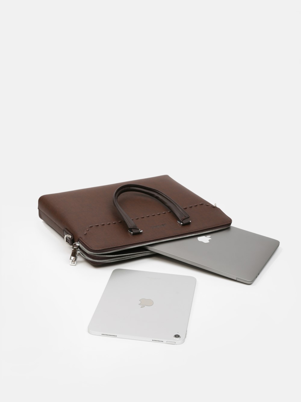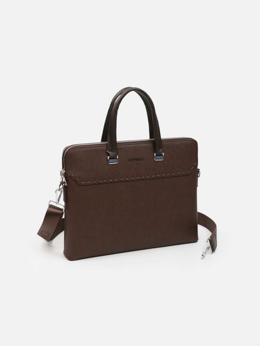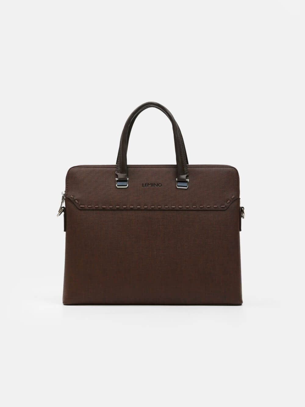 Túi công sở dáng briefcase LEMINO – phom đứng, tối giản lịch lãm. Thiết kế bản mỏng gọn, tay xách đôi chắc chắn, khoá kéo an toàn; điểm nhấn đai ngang với đinh tán tinh tế. Phù hợp mang đi làm, đi họp, đựng tài liệu và thiết bị mỏng