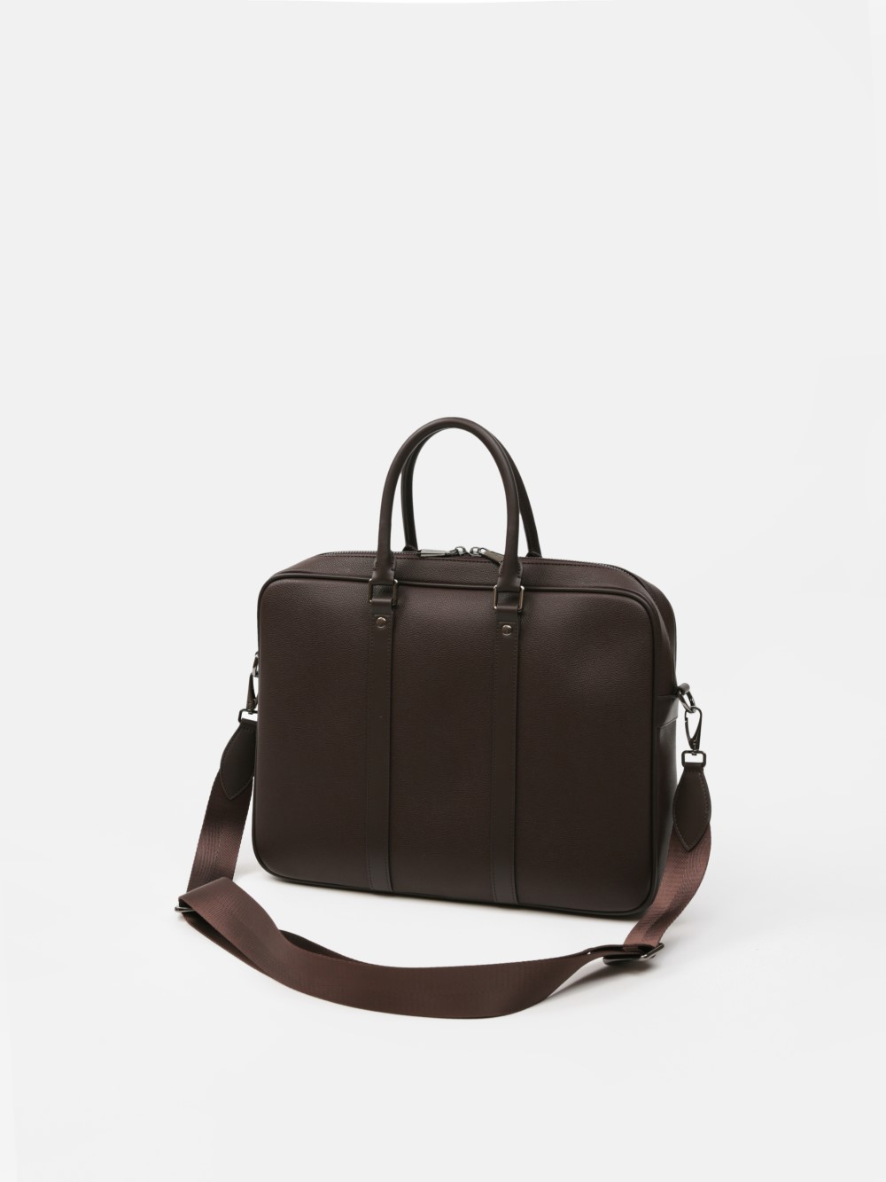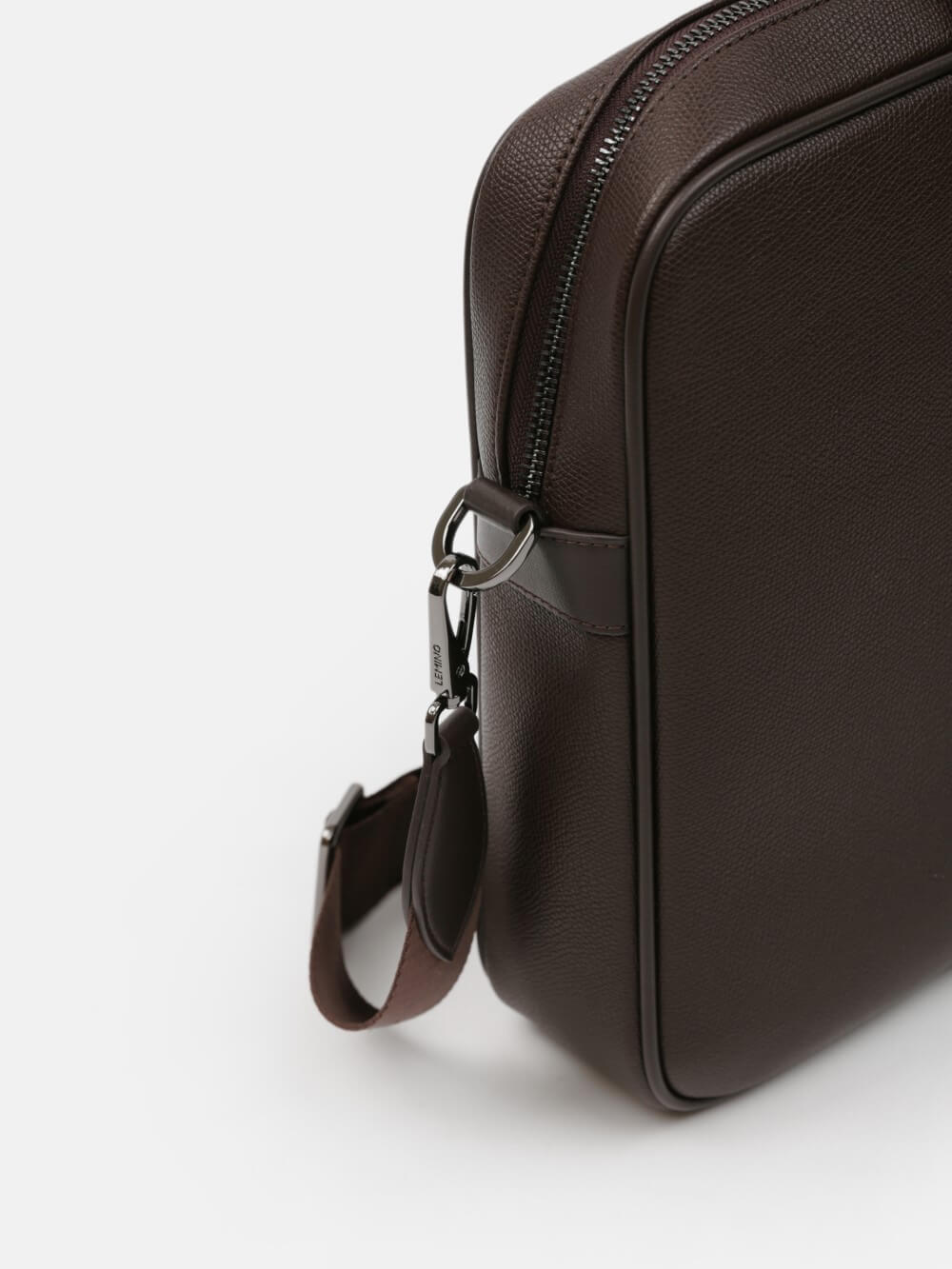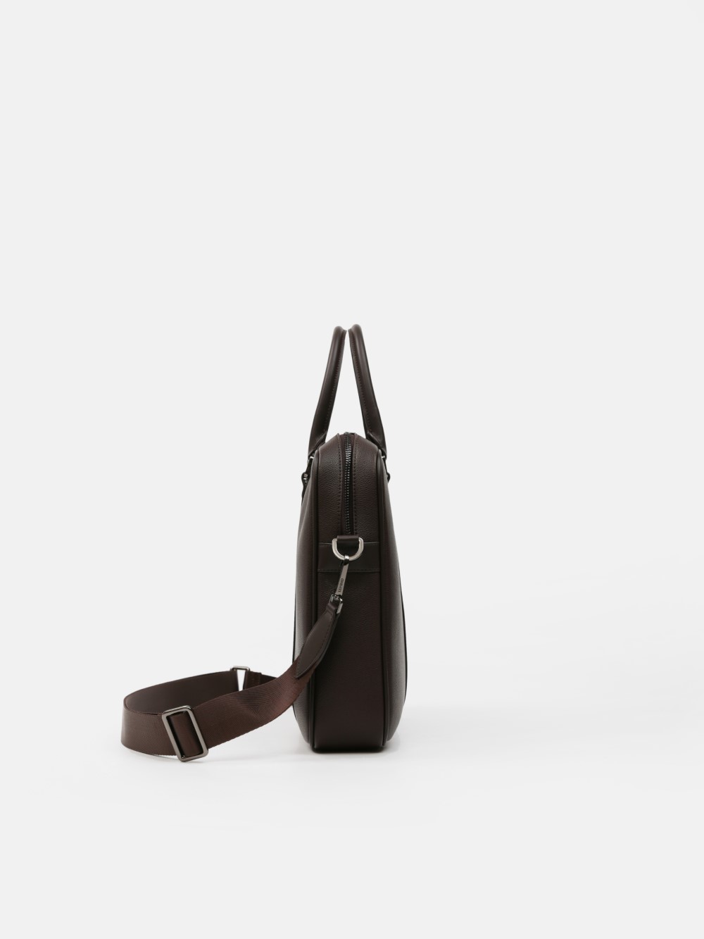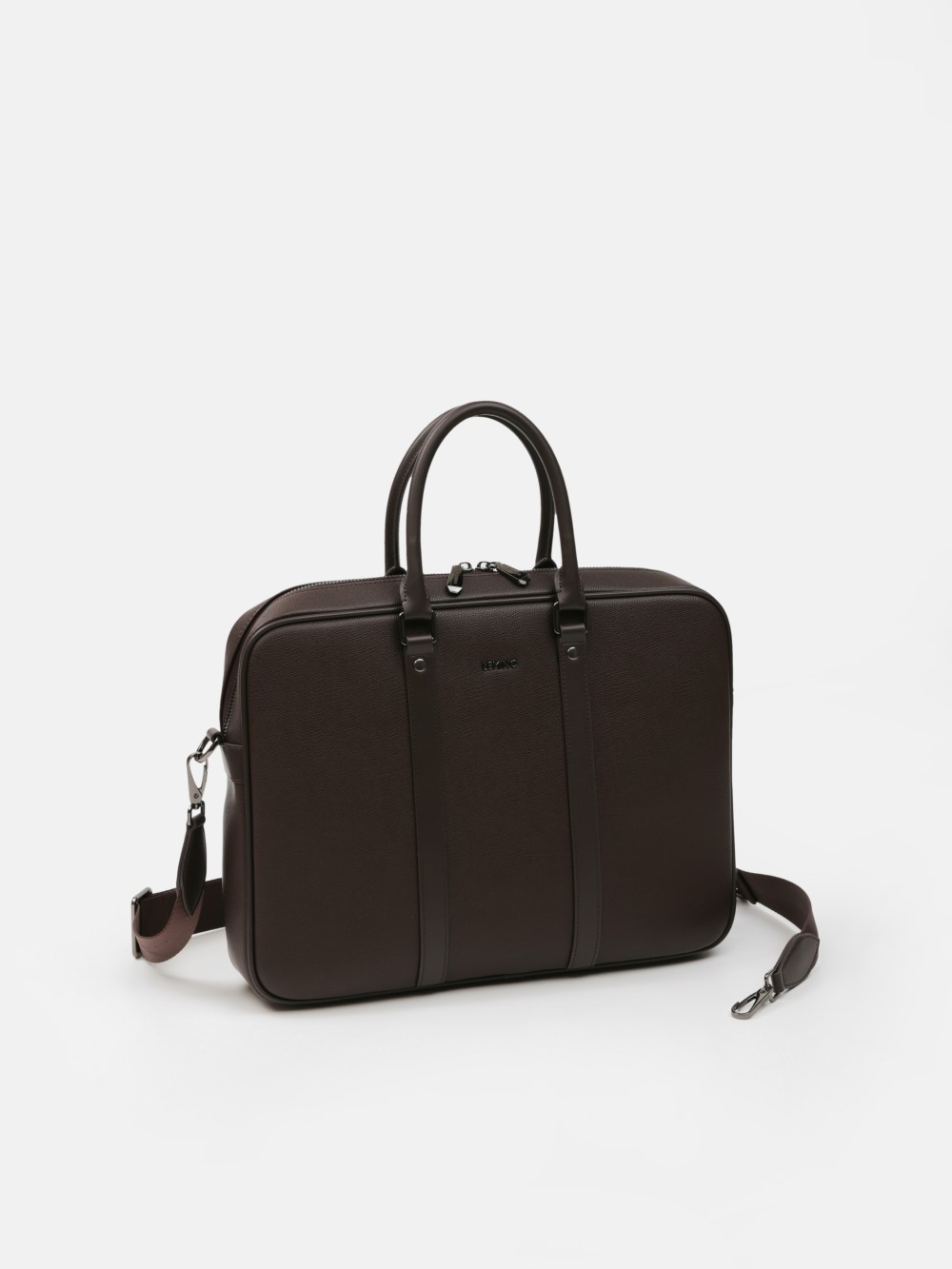 Cặp nam phom hộp tối giản, bề mặt da hạt chống xước nhẹ, điểm nhấn hai dải dọc và khoá kéo đôi kim loại trầm. Ngăn chính chứa tài liệu A4, laptop mỏng 13–14", bố trí thêm ngăn phụ cho điện thoại – bút – cáp. Đi kèm dây đeo bản rộng tháo rời và quai xách đôi, giữ phom đứng đẹp khi sử dụng. Dễ phối từ suit công sở đến smart-casual cuối tuần, giúp anh giữ vẻ gọn gàng và chuyên nghiệp suốt ngày dài.