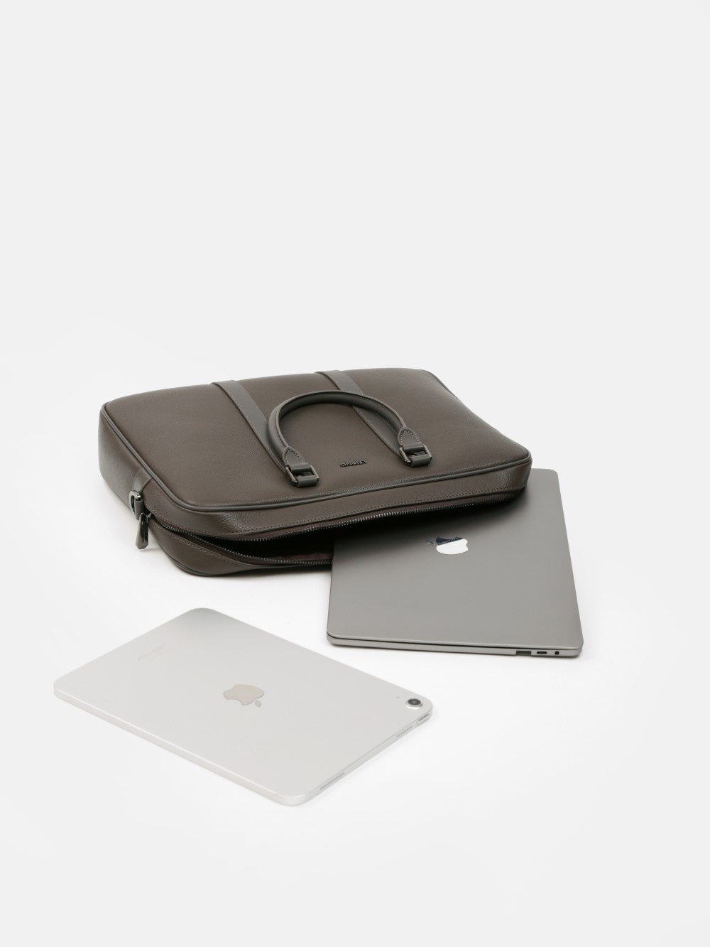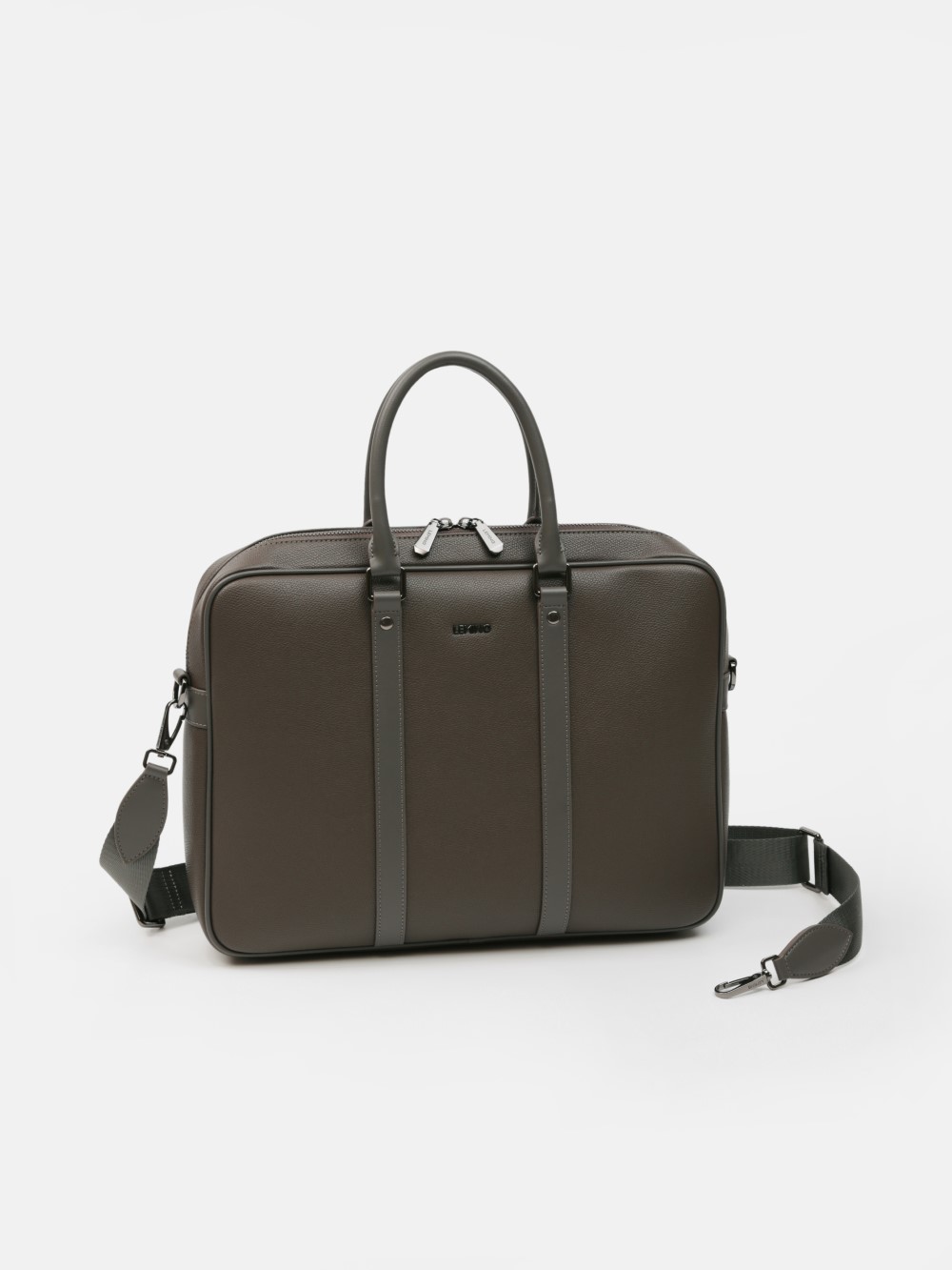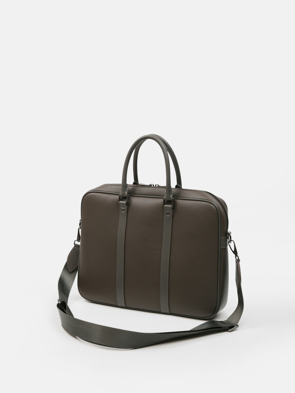 Cặp nam phom hộp tối giản, bề mặt da hạt chống xước nhẹ, điểm nhấn hai dải dọc và khoá kéo đôi kim loại trầm. Ngăn chính chứa tài liệu A4, laptop mỏng 13–14", bố trí thêm ngăn phụ cho điện thoại – bút – cáp. Đi kèm dây đeo bản rộng tháo rời và quai xách đôi, giữ phom đứng đẹp khi sử dụng. Dễ phối từ suit công sở đến smart-casual cuối tuần, giúp anh giữ vẻ gọn gàng và chuyên nghiệp suốt ngày dài.