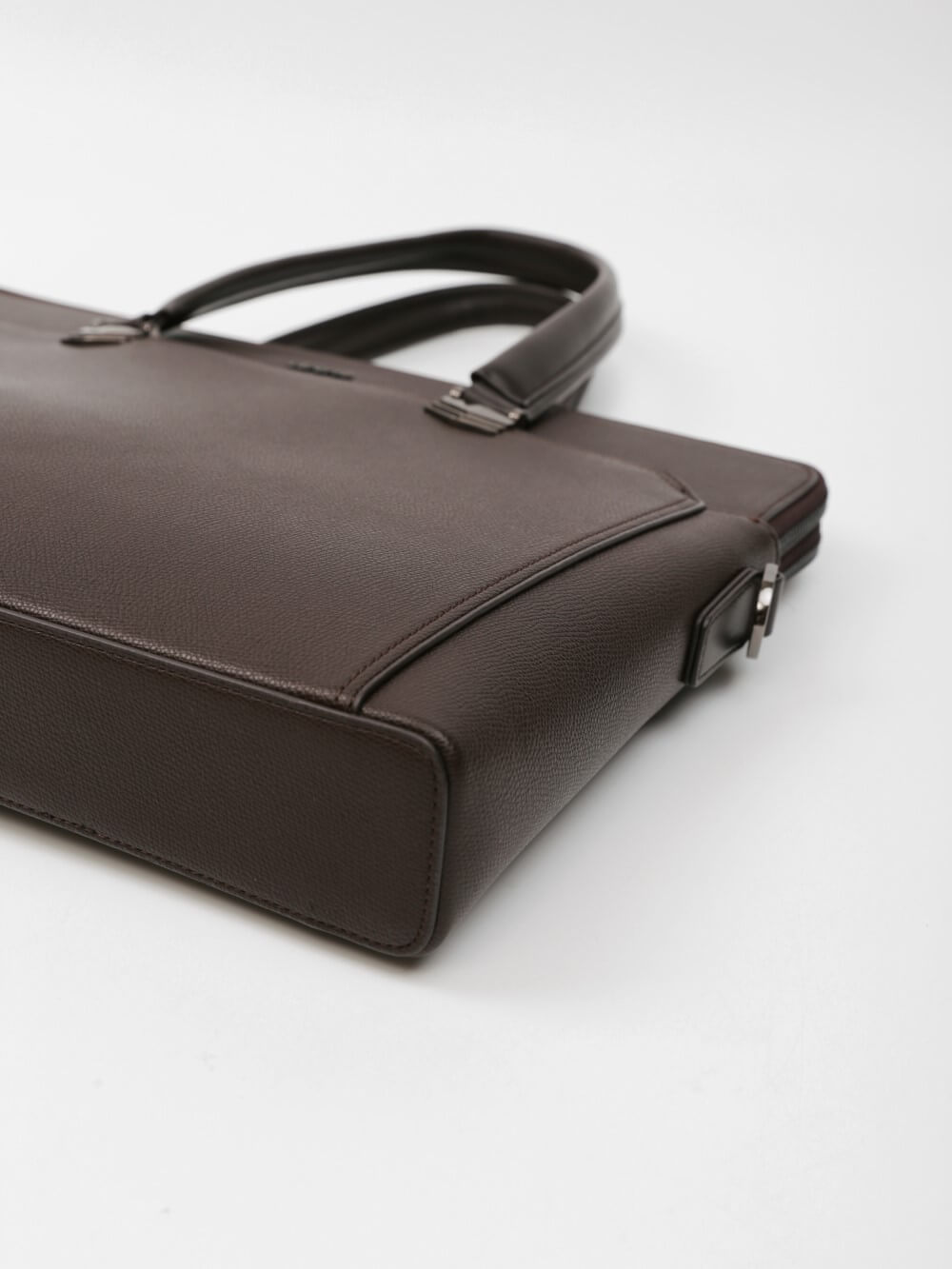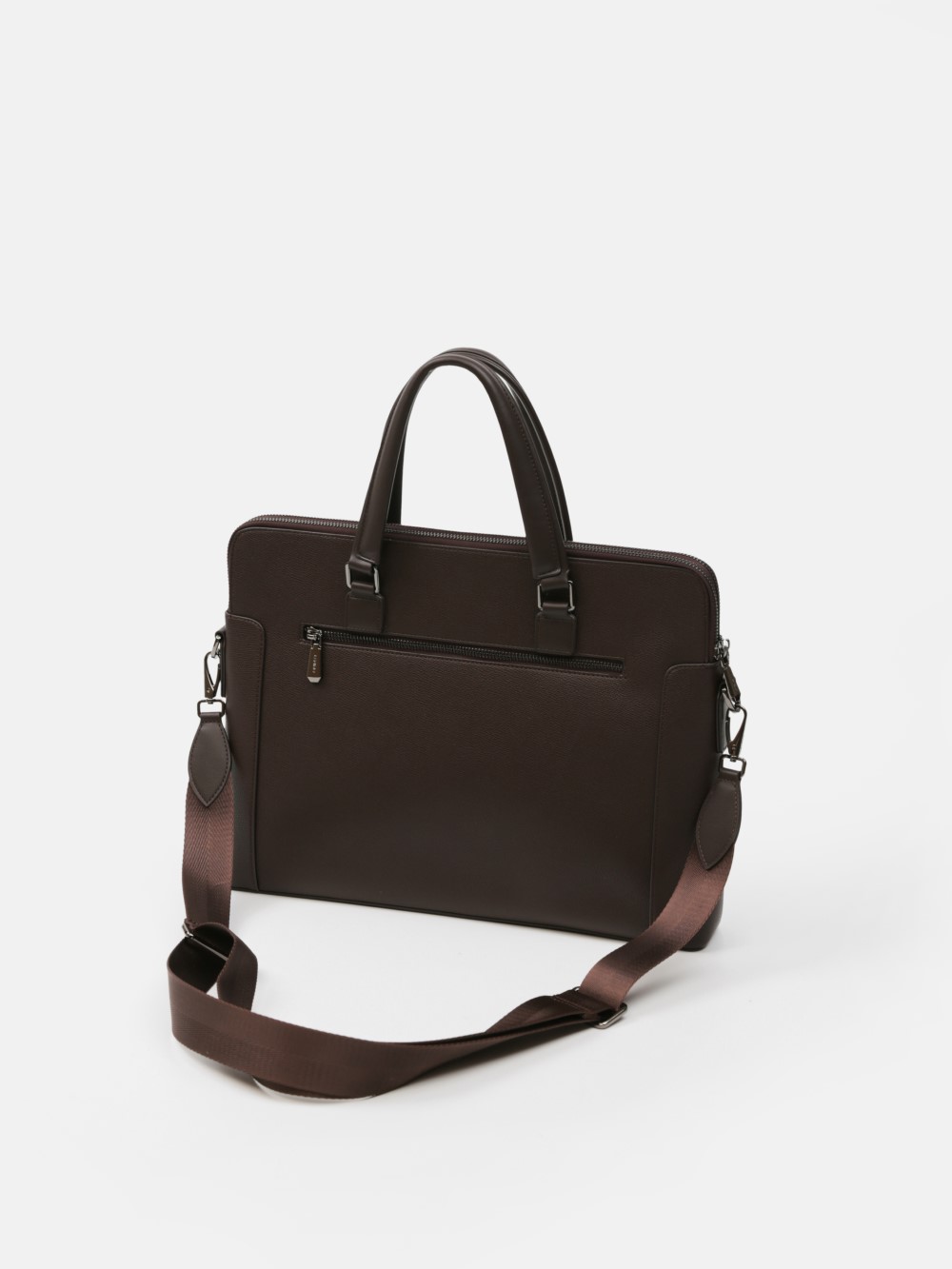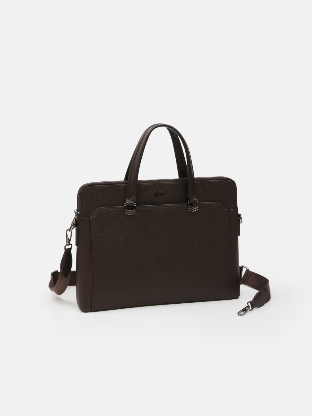 Cặp nam phom hộp mảnh mai với bề mặt da hạt chống trầy nhẹ, viền bo tinh gọn và phụ kiện kim loại màu gunmetal. Ngăn chính chứa tài liệu A4, laptop mỏng 13–14", kèm các ngăn phụ cho bút, thẻ, cáp; phía trước có ngăn nhanh tay. Đi kèm quai xách đôi và dây đeo tháo rời bản rộng cho hai cách mang linh hoạt. Dễ phối từ suit công sở đến smart–casual cuối tuần, giữ hình ảnh gọn gàng, chuyên nghiệp trong mọi lịch trình.