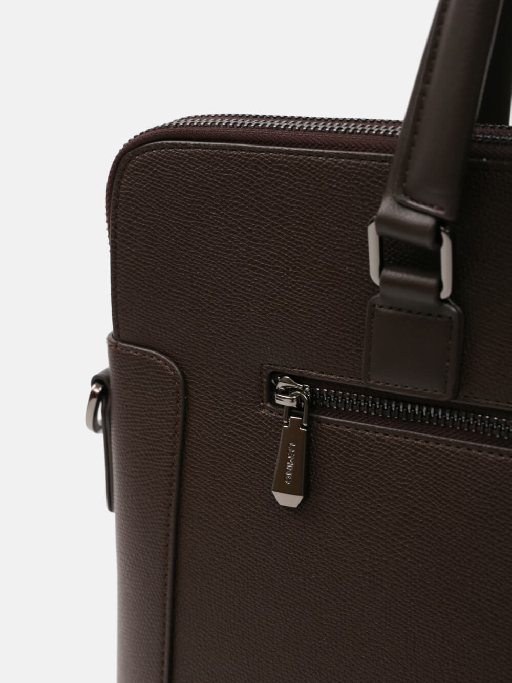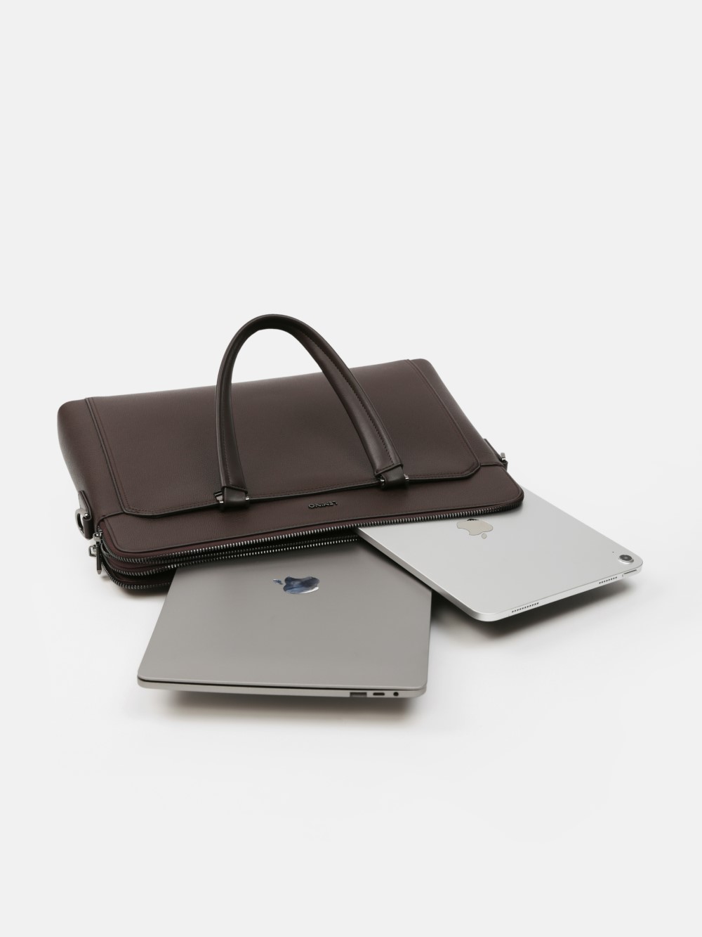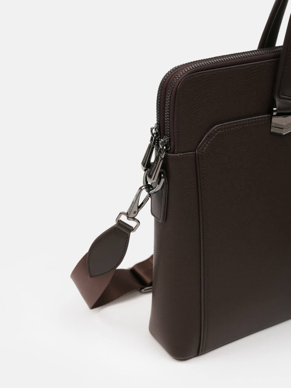 Cặp nam phom hộp mảnh mai với bề mặt da hạt chống trầy nhẹ, viền bo tinh gọn và phụ kiện kim loại màu gunmetal. Ngăn chính chứa tài liệu A4, laptop mỏng 13–14", kèm các ngăn phụ cho bút, thẻ, cáp; phía trước có ngăn nhanh tay. Đi kèm quai xách đôi và dây đeo tháo rời bản rộng cho hai cách mang linh hoạt. Dễ phối từ suit công sở đến smart–casual cuối tuần, giữ hình ảnh gọn gàng, chuyên nghiệp trong mọi lịch trình.