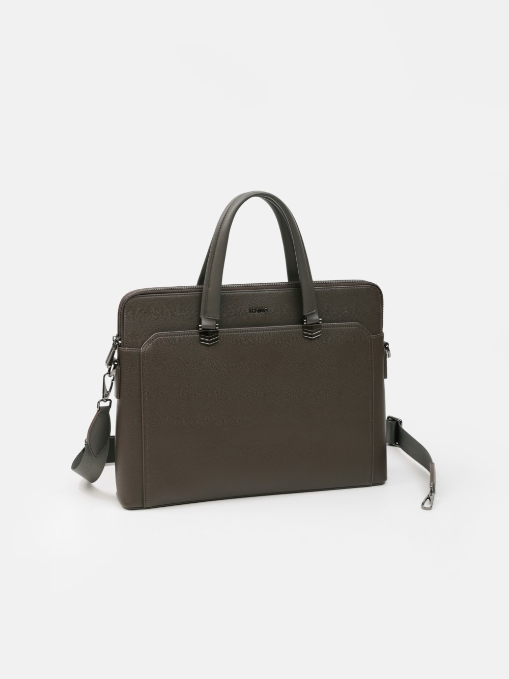 Cặp nam phom hộp mảnh mai với bề mặt da hạt chống trầy nhẹ, viền bo tinh gọn và phụ kiện kim loại màu gunmetal. Ngăn chính chứa tài liệu A4, laptop mỏng 13–14", kèm các ngăn phụ cho bút, thẻ, cáp; phía trước có ngăn nhanh tay. Đi kèm quai xách đôi và dây đeo tháo rời bản rộng cho hai cách mang linh hoạt. Dễ phối từ suit công sở đến smart–casual cuối tuần, giữ hình ảnh gọn gàng, chuyên nghiệp trong mọi lịch trình.