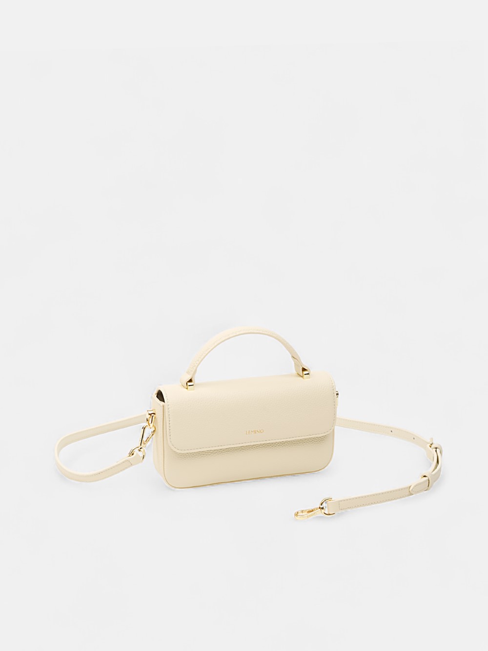 Chiếc mini top-handle LEMINO mang phom hộp bo góc và nắp gập chỉn chu, bề mặt da vân sần và logo dập nhũ tinh tế. Túi đi kèm quai xách tay cùng dây dài tháo rời – điều chỉnh, từ xách tay, đeo vai đến đeo chéo. Khoang chứa gọn gàng với các ngăn phụ đủ cho điện thoại, ví mini, son và chìa khóa, giúp giữ đồ ngăn nắp. Gam màu trung tính dễ phối từ công sở đến dạo phố hay buổi hẹn tối, hoàn thiện phong cách thanh lịch, tối giản mà vẫn nổi bật.