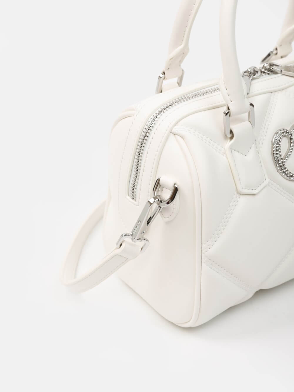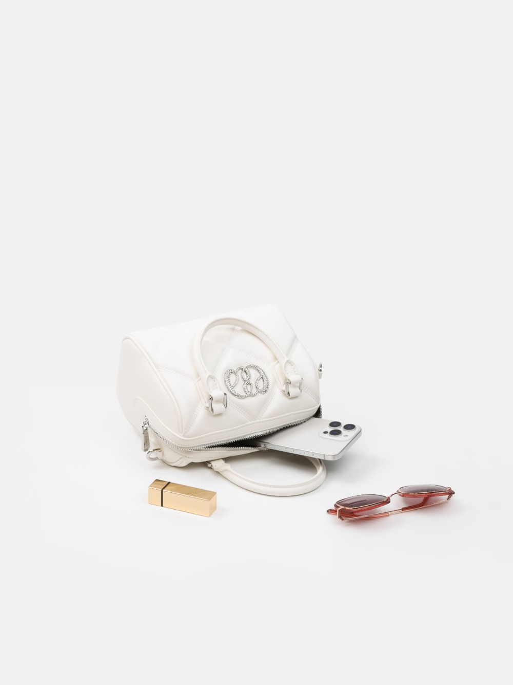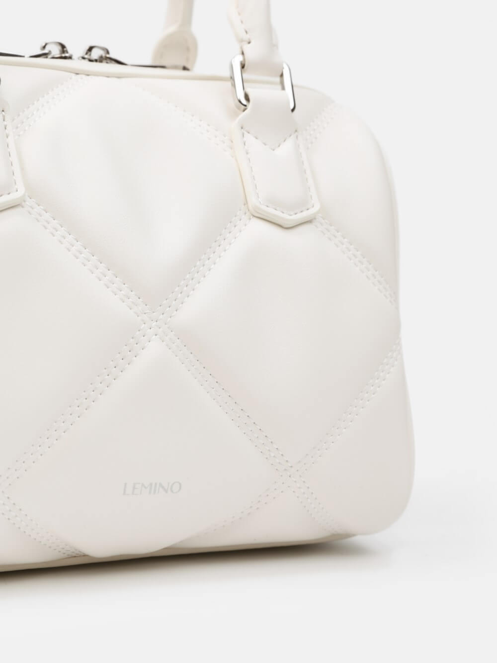 Phom hộp bo tròn sang gọn, bề mặt chần trám nổi tạo hiệu ứng cao cấp. Miệng túi khóa kéo 2 đầu, quai xách đôi thanh lịch, có khoen gắn dây đeo.