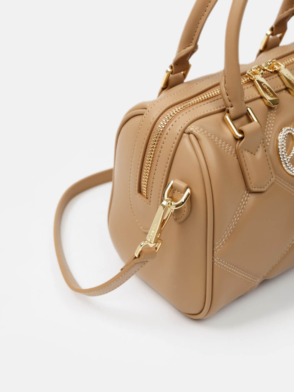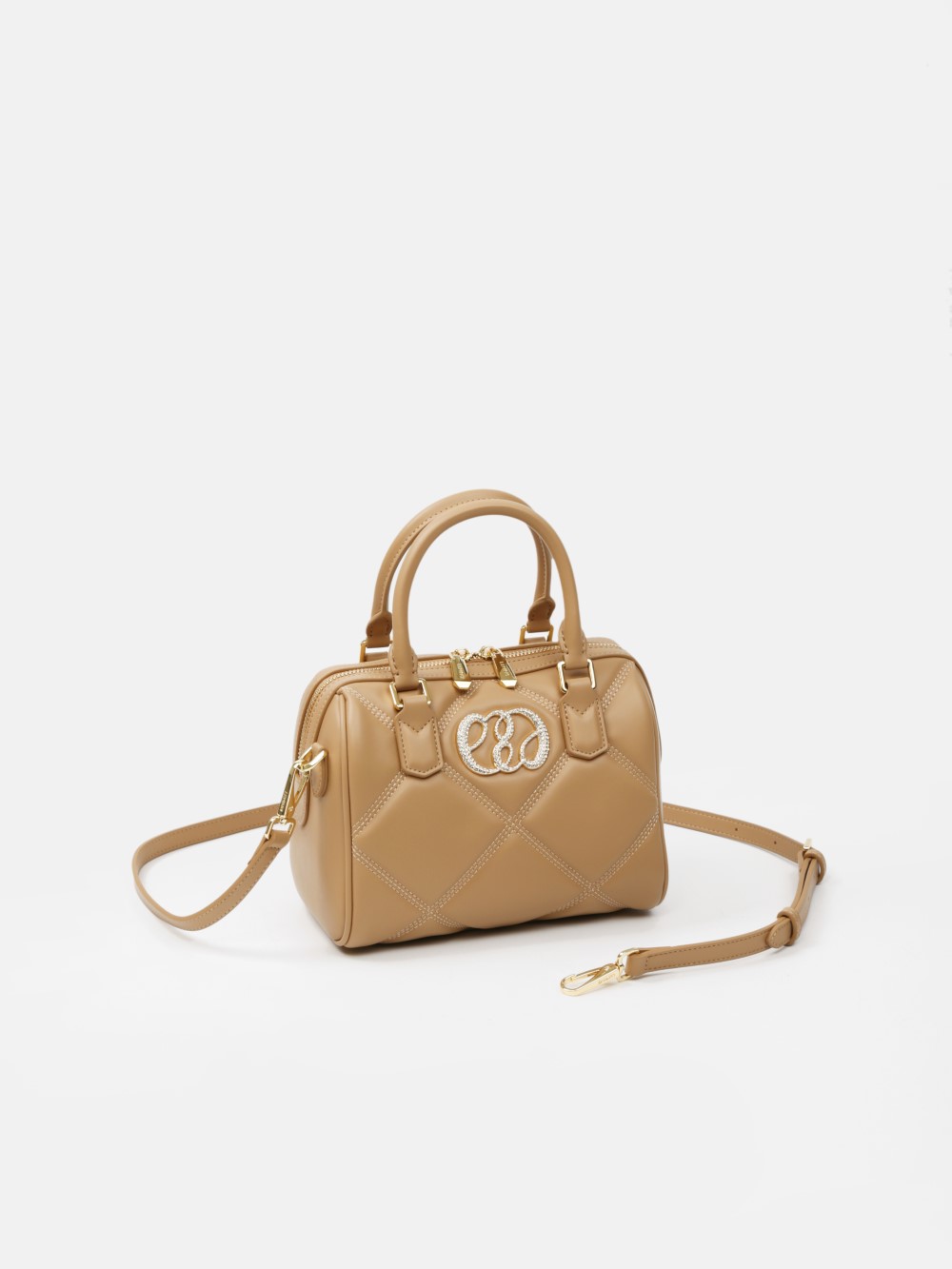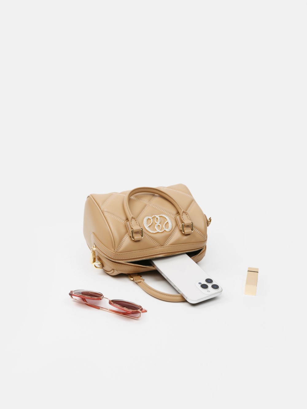 Phom hộp bo tròn sang gọn, bề mặt chần trám nổi tạo hiệu ứng cao cấp. Miệng túi khóa kéo 2 đầu, quai xách đôi thanh lịch, có khoen gắn dây đeo.