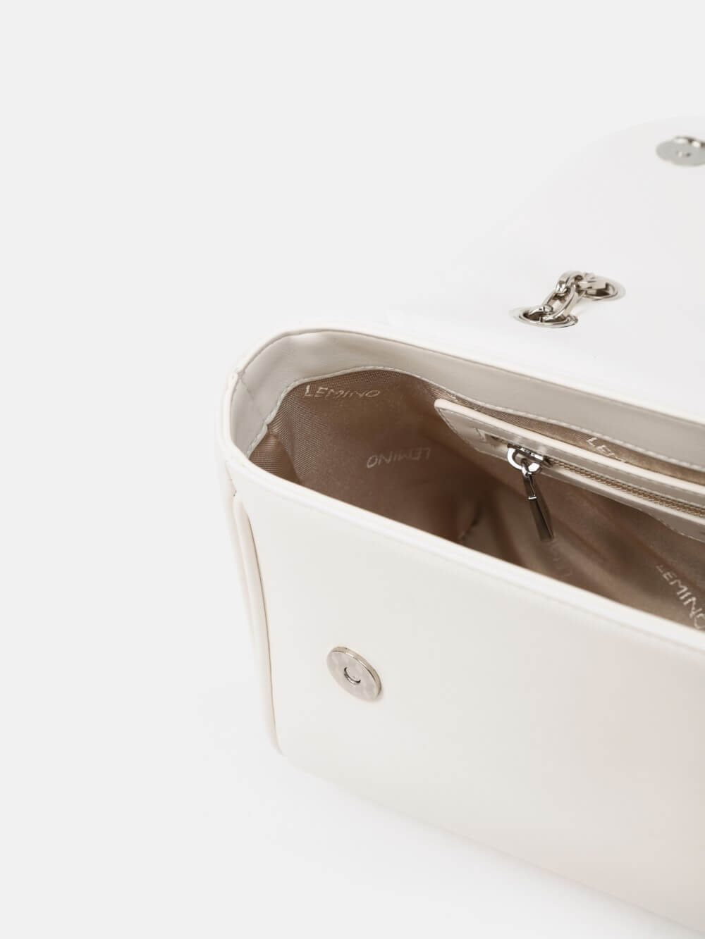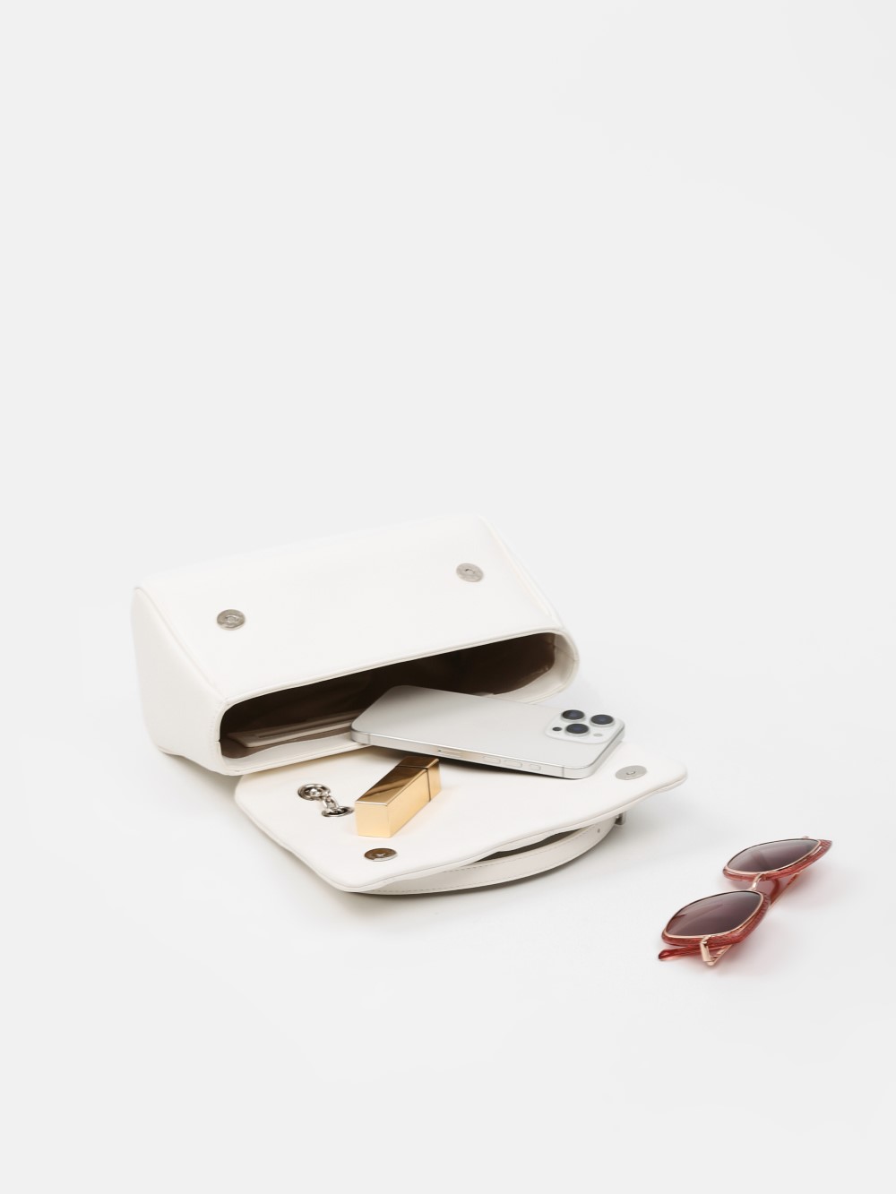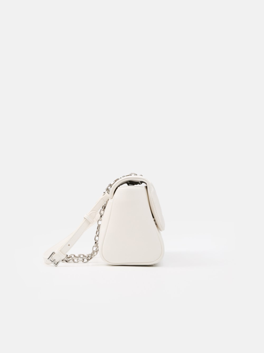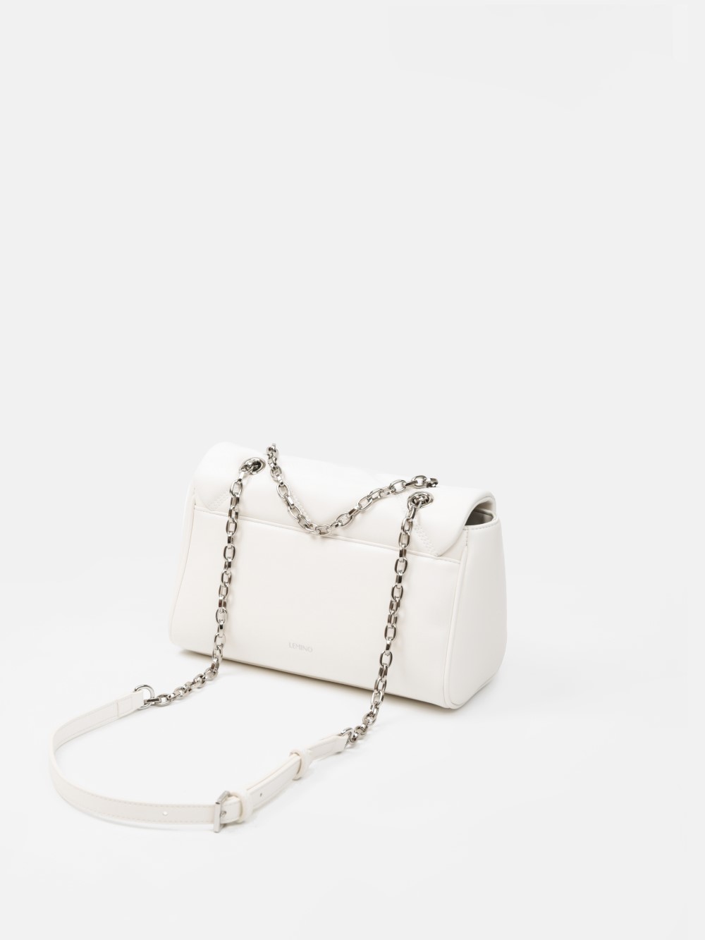 Dáng chữ nhật, nắp gập thanh lịch, điểm nhấn logo kim loại sang. Dây đeo xích kết hợp dây da điều chỉnh, linh hoạt đeo vai hoặc đeo chéo.