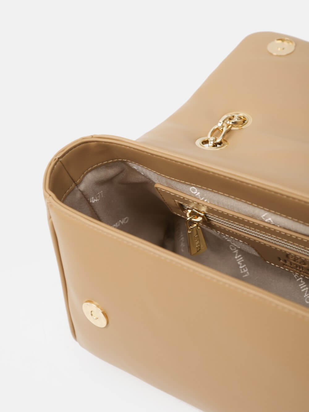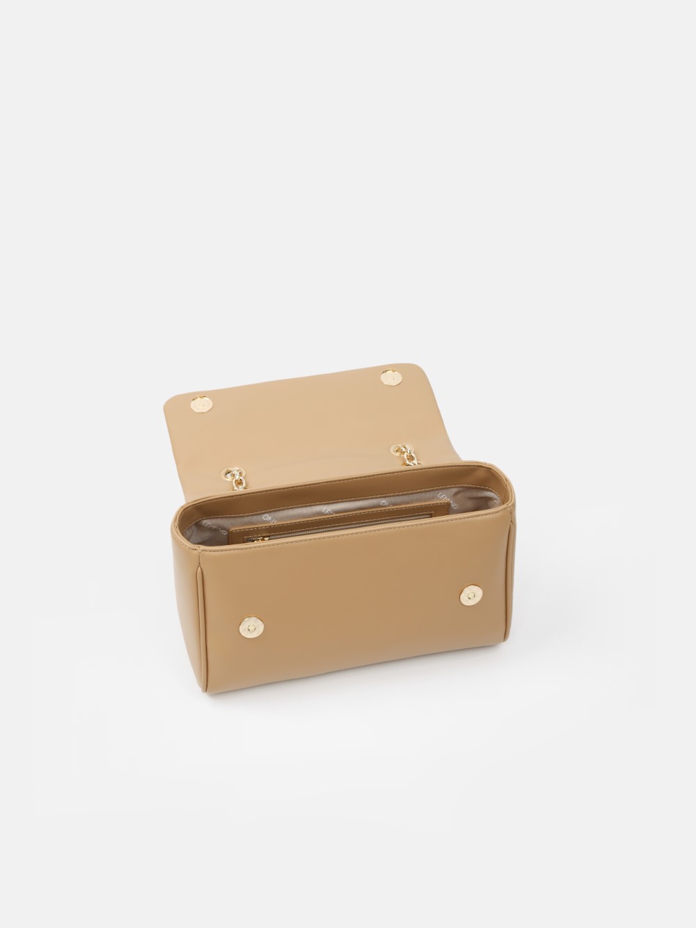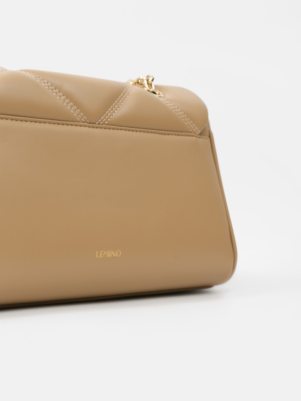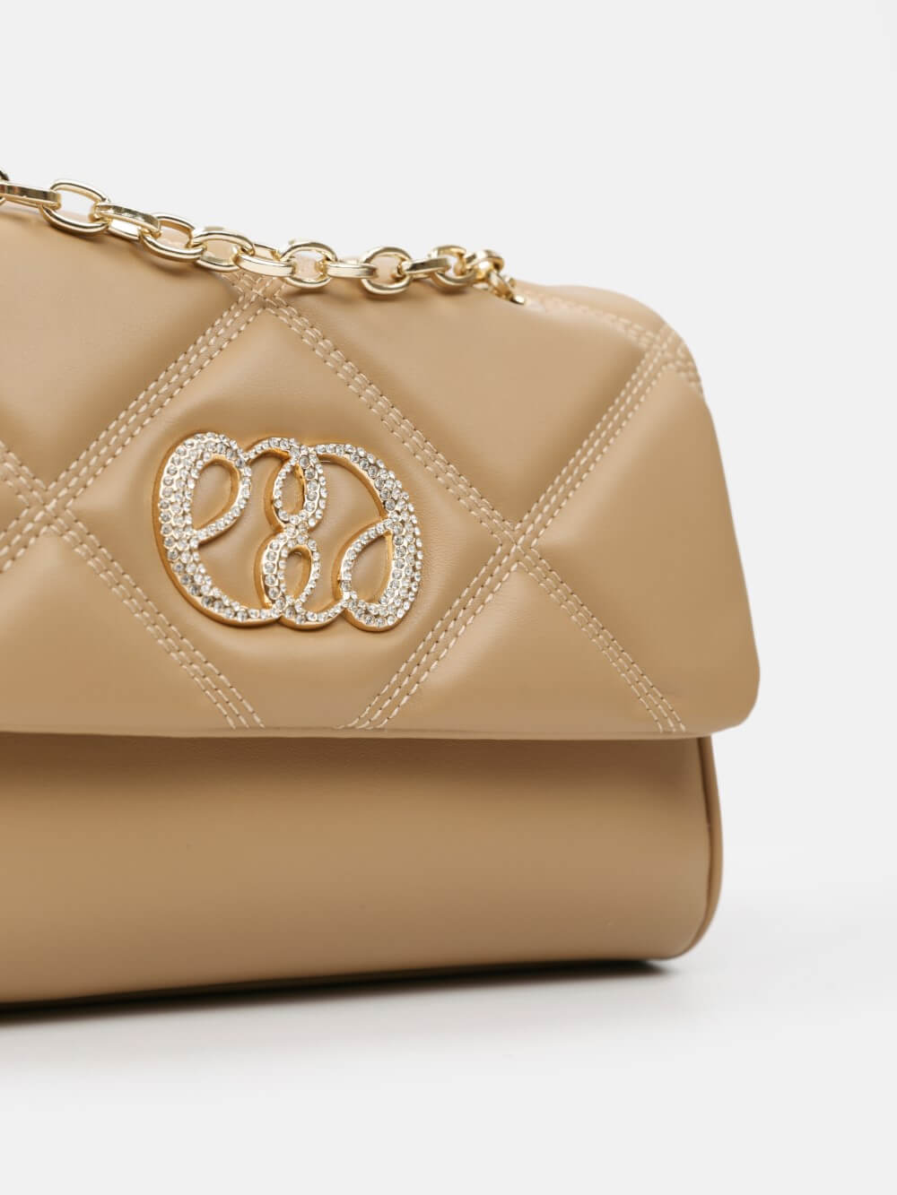 Dáng chữ nhật, nắp gập thanh lịch, điểm nhấn logo kim loại sang. Dây đeo xích kết hợp dây da điều chỉnh, linh hoạt đeo vai hoặc đeo chéo.