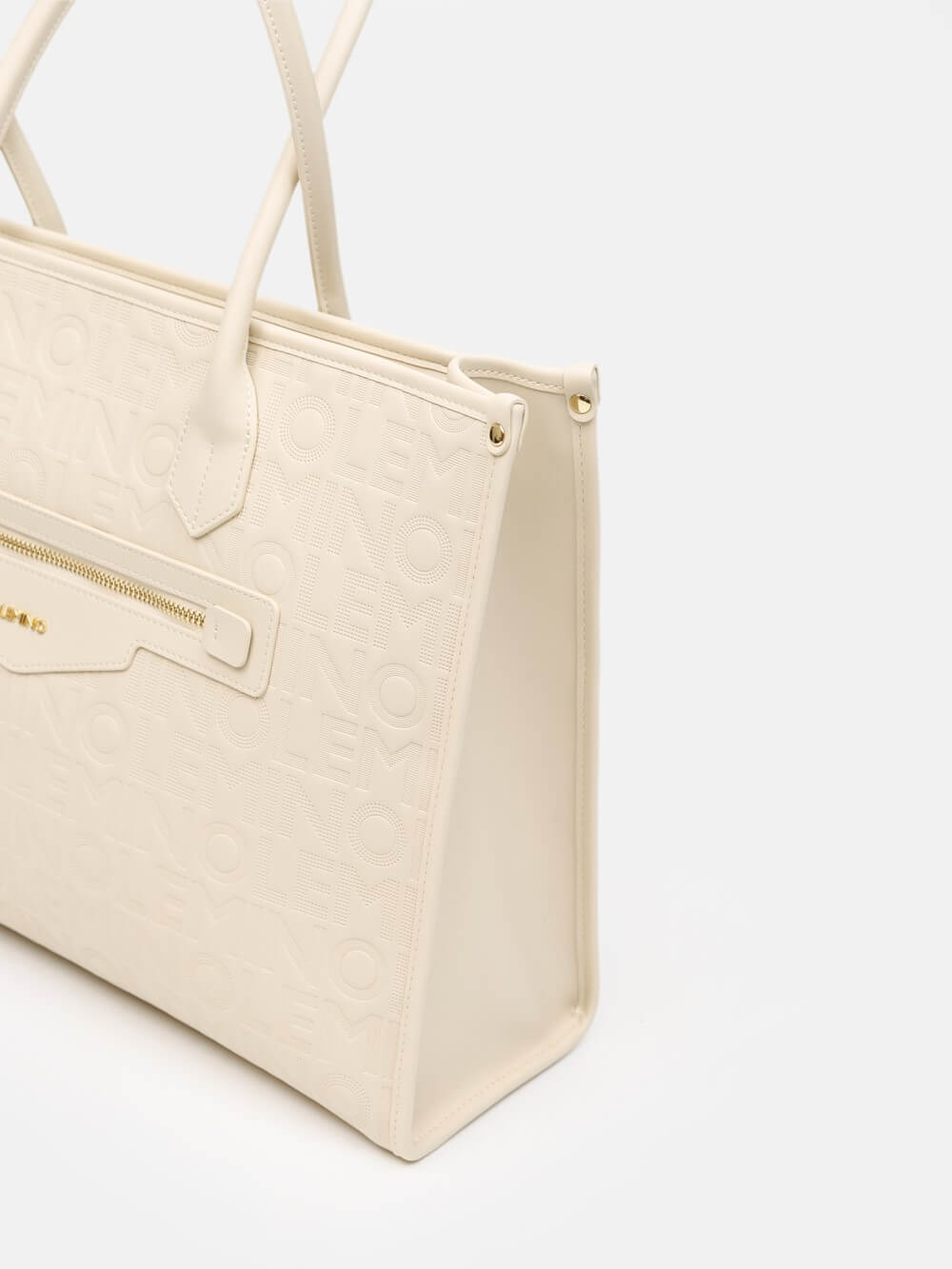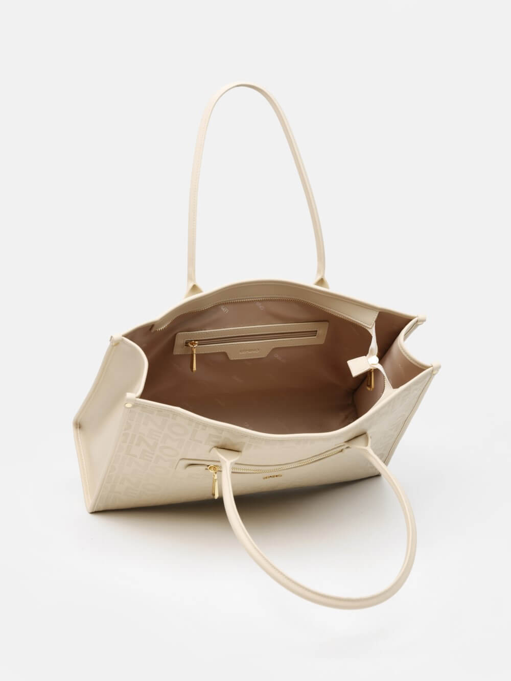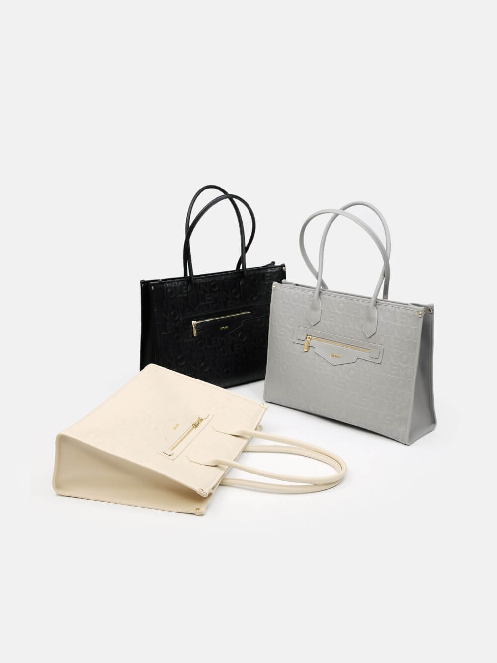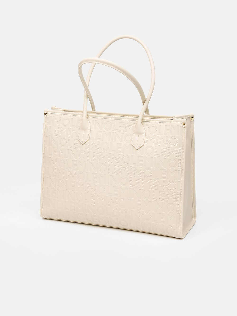 Bề mặt túi được xử lý dập monogram LEMINO toàn thân, tạo hiệu ứng sang trọng và nhận diện thương hiệu rõ nét. Điểm nhấn phía trước là ngăn khóa kéo ngang kết hợp logo kim loại tinh tế, vừa tăng tính thẩm mỹ vừa thuận tiện để cất giữ các vật dụng nhỏ.