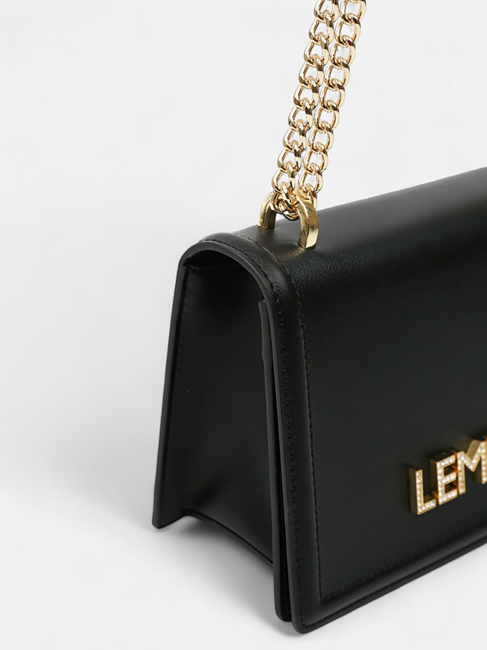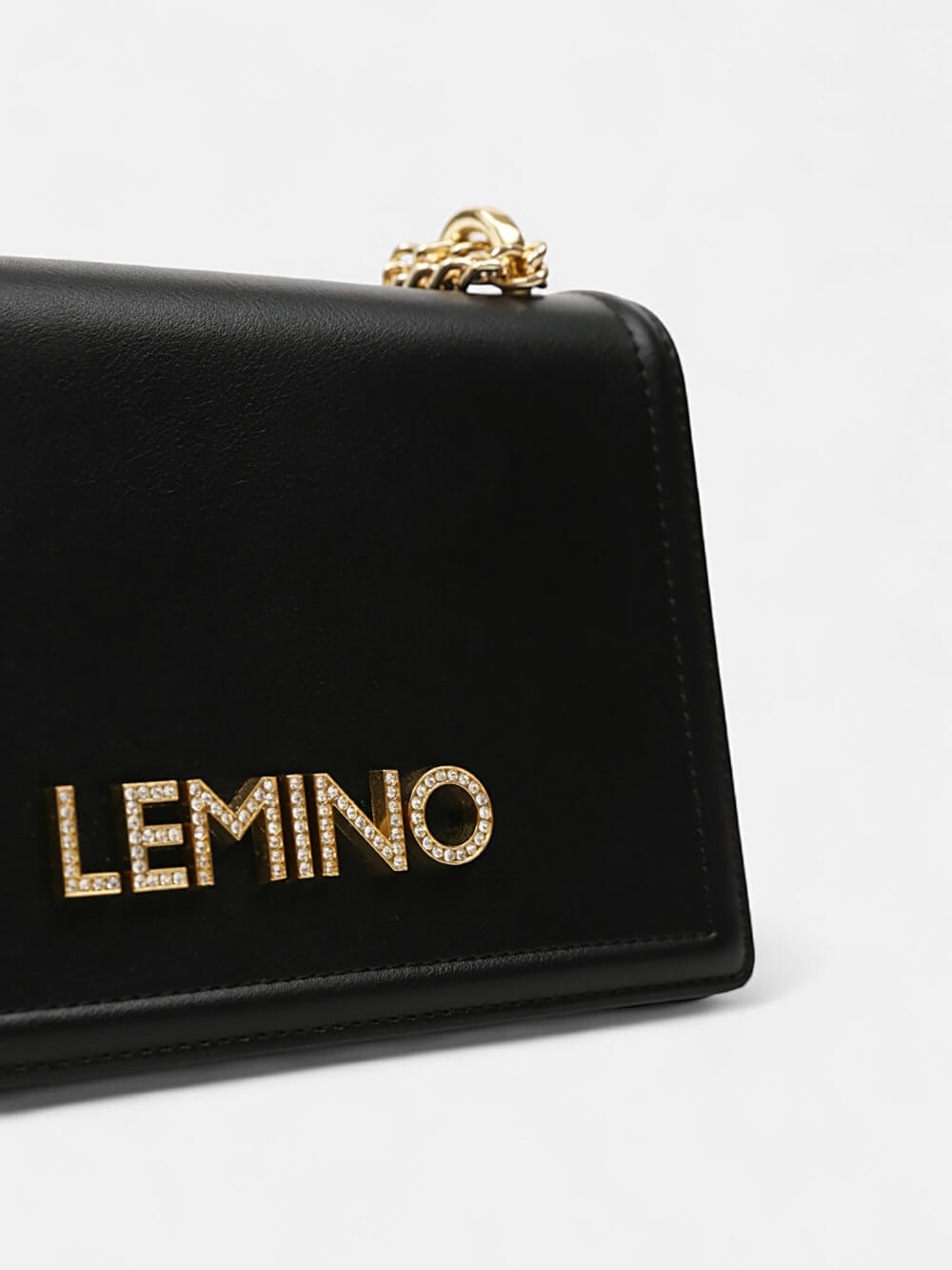 Túi xách nữ LEMINO – Thiết kế phom hộp nhỏ gọn. Logo LEMINO đính đá lấp lánh, dây đeo xích thời thượng, vừa tinh tế vừa nổi bật. Phụ kiện hoàn hảo cho tiệc tối và phong cách hiện đại.