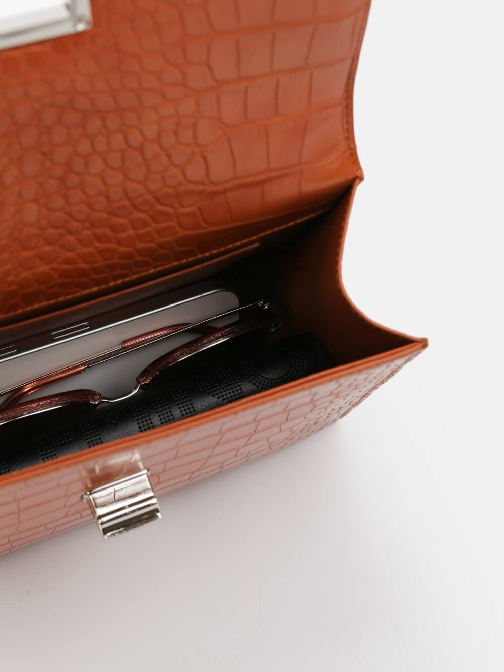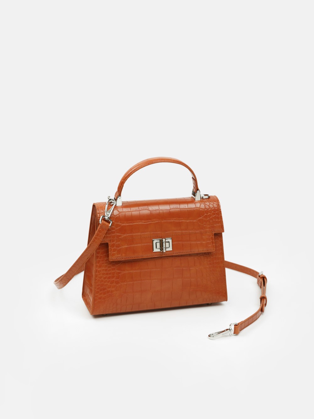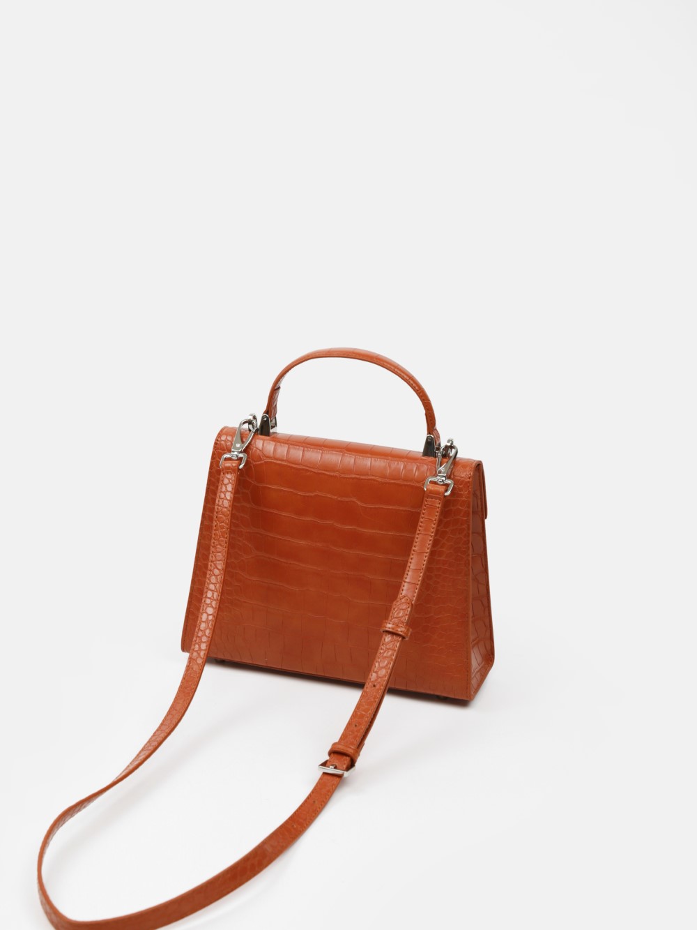 Dáng hộp sang trọng với bề mặt da vân cá sấu, khóa xoay kim loại và quai xách tay thanh lịch. Kèm dây đeo chéo linh hoạt – lý tưởng cho đi làm, dự tiệc, dạo phố.