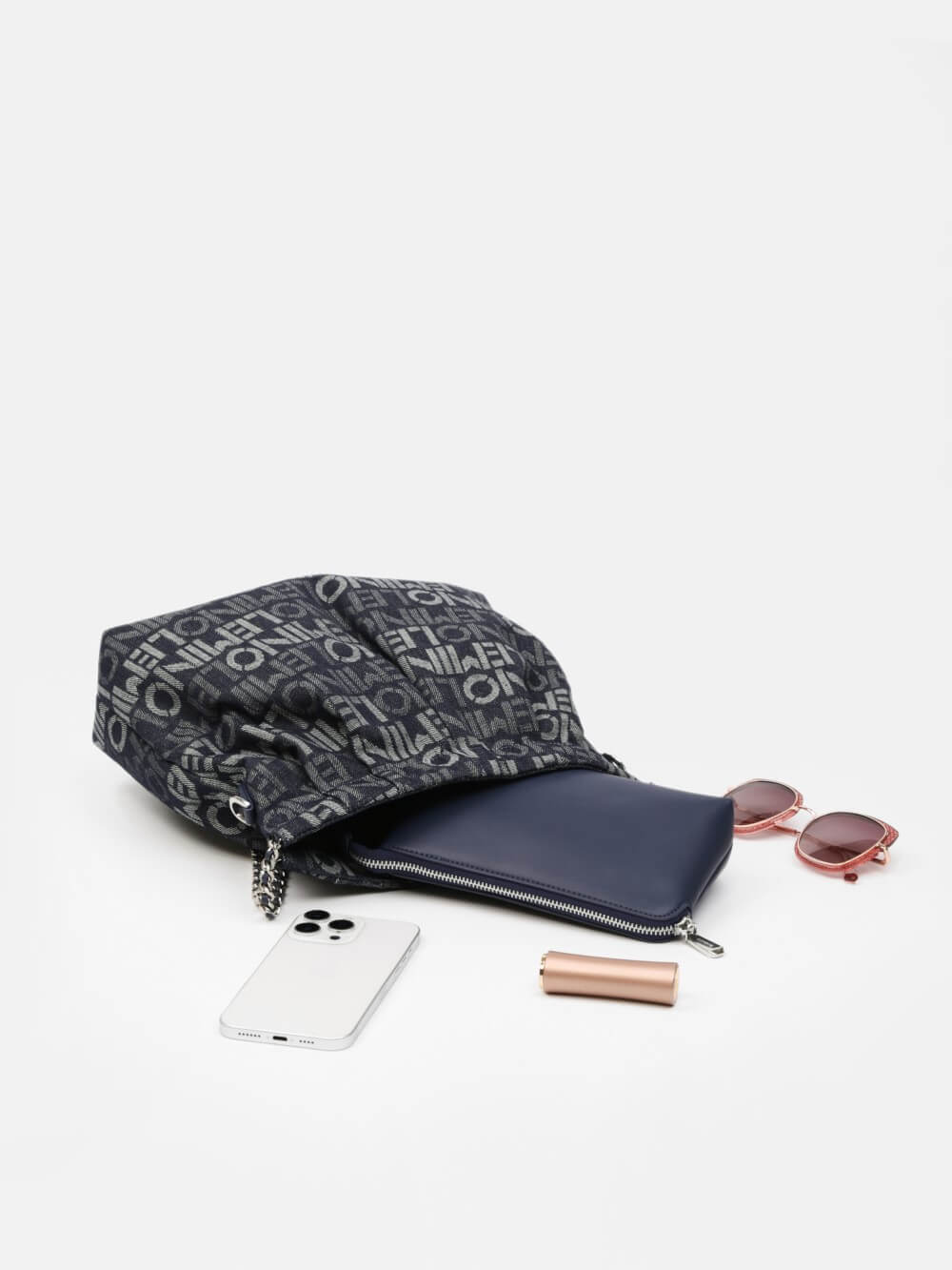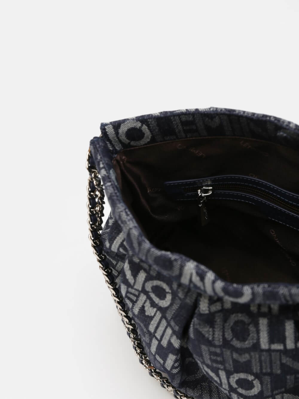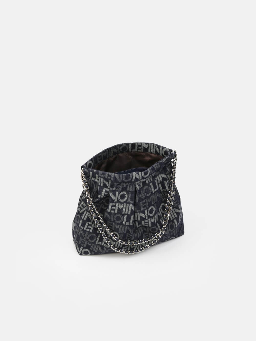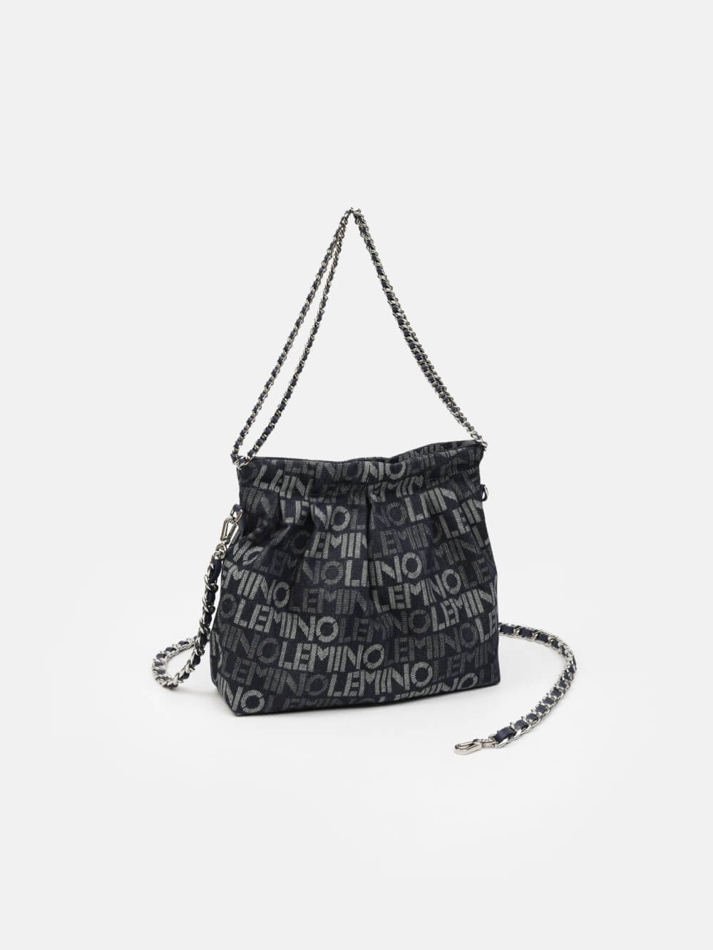 Phá cách hiện đại với họa tiết logo LEMINO toàn bộ bề mặt, chiếc túi denim này mang đến phong thái năng động và cá tính. Form mềm dễ gập gọn, phối dây xích ánh bạc tạo điểm nhấn nổi bật. Phù hợp cho cả dạo phố và đi chơi cuối tuần.