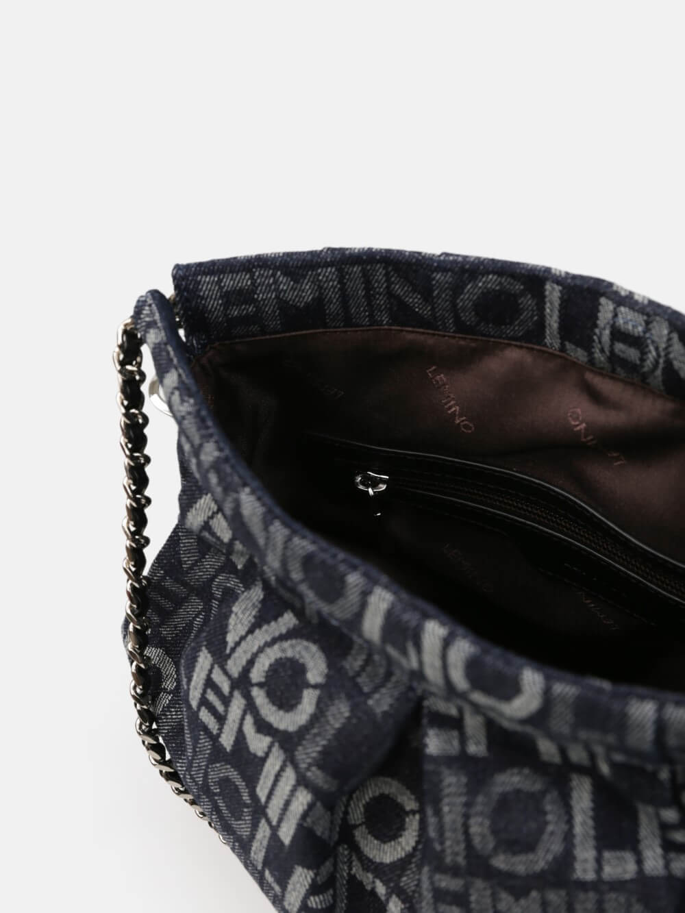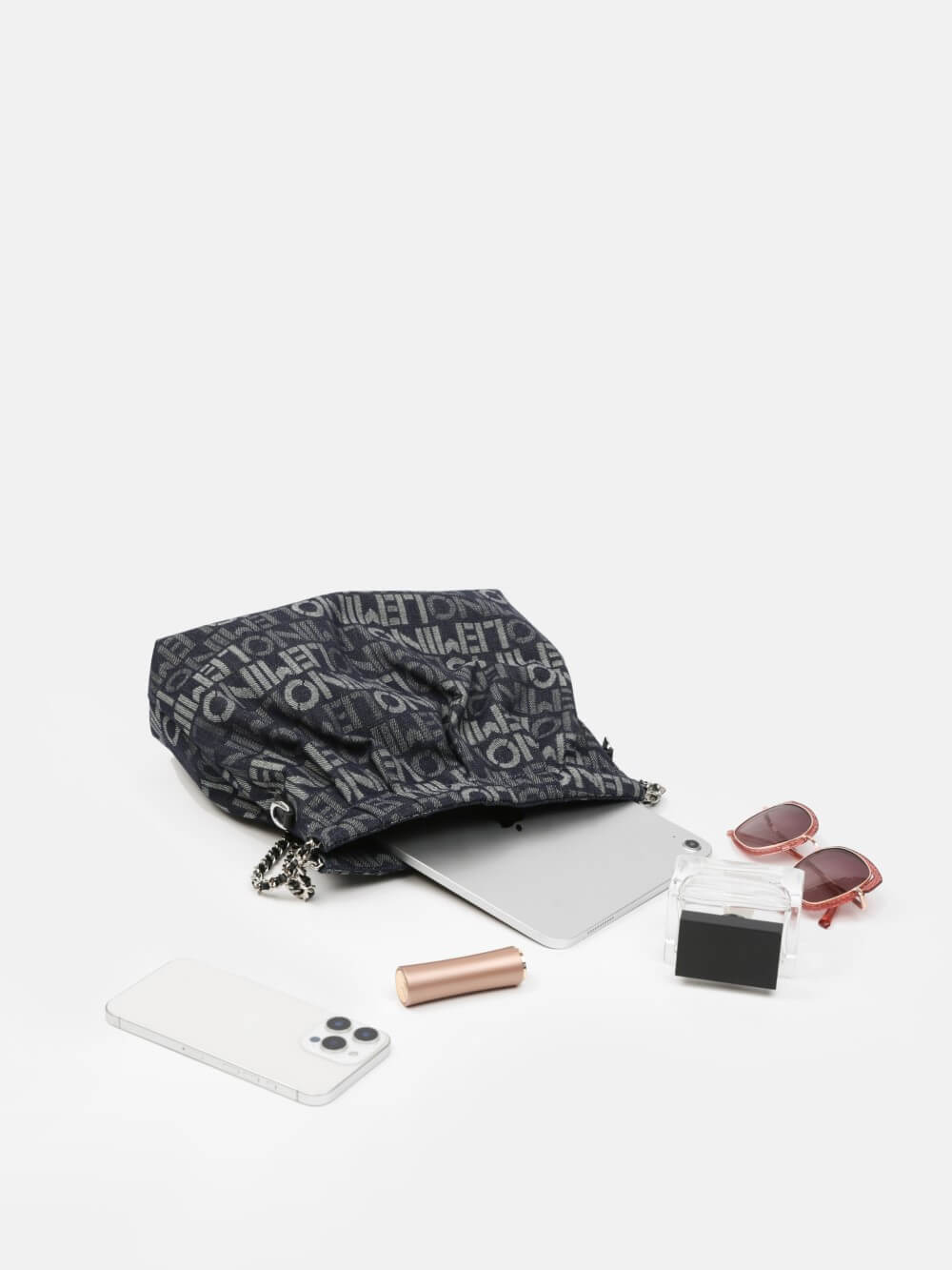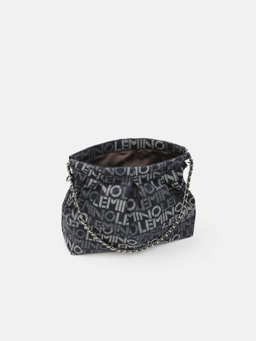 Phá cách hiện đại với họa tiết logo LEMINO toàn bộ bề mặt, chiếc túi denim này mang đến phong thái năng động và cá tính. Form mềm dễ gập gọn, phối dây xích ánh bạc tạo điểm nhấn nổi bật. Phù hợp cho cả dạo phố và đi chơi cuối tuần.