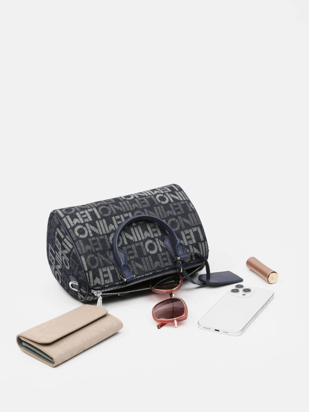 Chiếc túi Boston phiên bản hiện đại có tay cầm bọc da, phối tag, đi kèm dây đeo chéo tiện lợi – thích hợp để nàng di chuyển cả ngày dài trong phong cách cá tính nhưng vẫn thanh lịch.