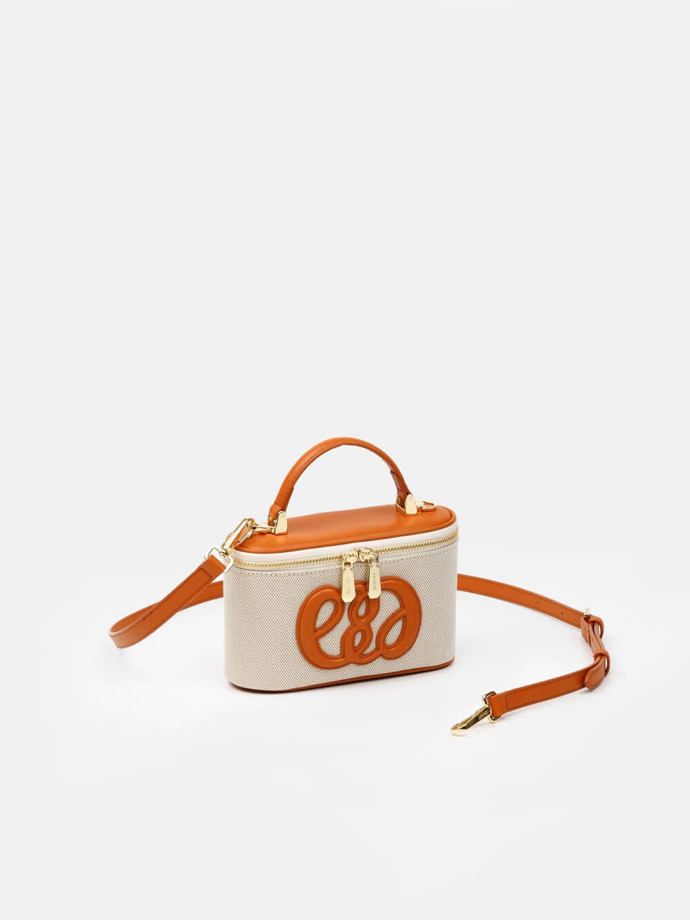 Bề mặt túi kết hợp chất liệu canvas dệt tinh tế cùng các chi tiết da Microfiber màu cam nổi bật, tạo nên sự tương phản hài hòa và thời trang. Điểm nhấn phía trước là logo LL cách điệu bản lớn, giúp chiếc túi trở nên nổi bật và mang đậm dấu ấn thương hiệu.