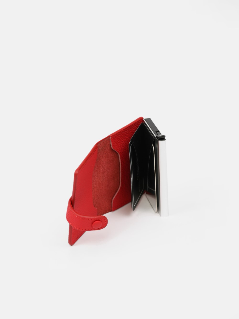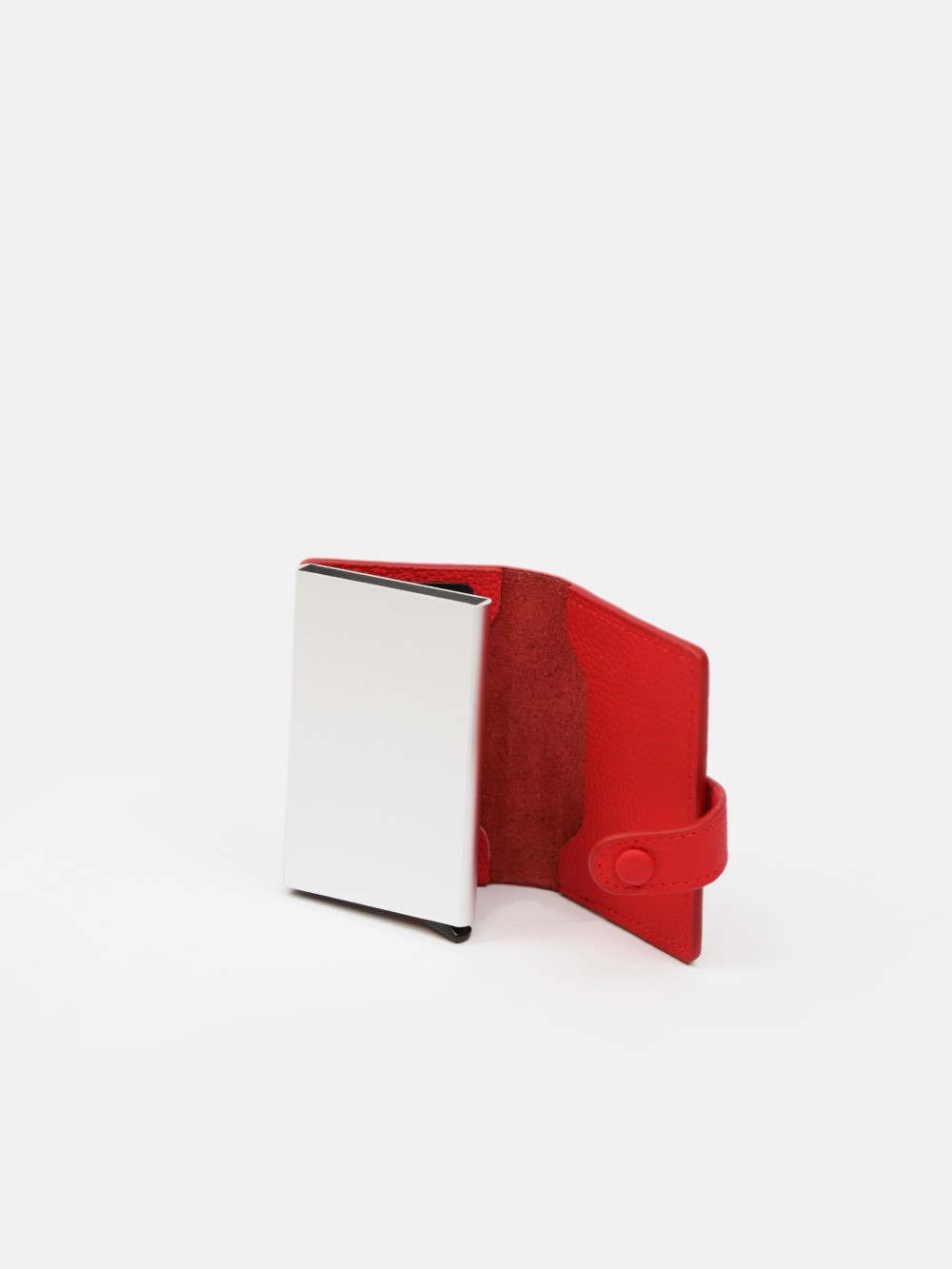 Ví mini dáng đứng bọc da, tích hợp lõi nhôm bảo mật RFID. Cơ chế đẩy thẻ thông minh tiện lợi, gọn nhẹ và an toàn. Phù hợp cả nam và nữ.