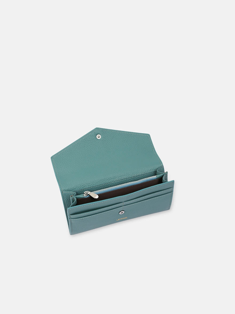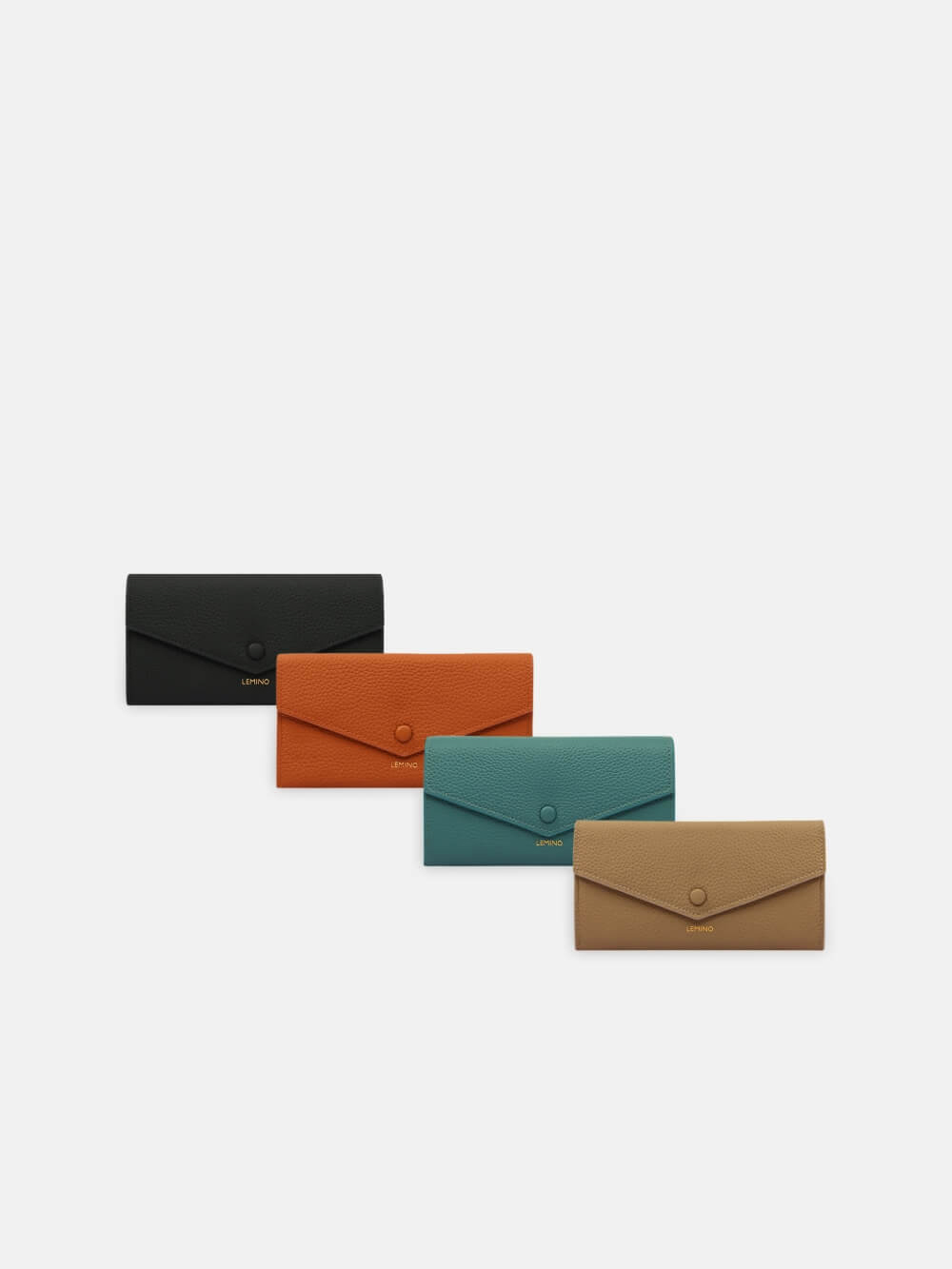 Được tái hiện lại vẻ bề ngoài giống như một chiếc bì thư quen thuộc, nắp gập với khuy bấm chắc chắc cùng cấu trúc ngăn đa dạng thường thấy ở các thiết kế ví cầm tay nữ của Lemino.